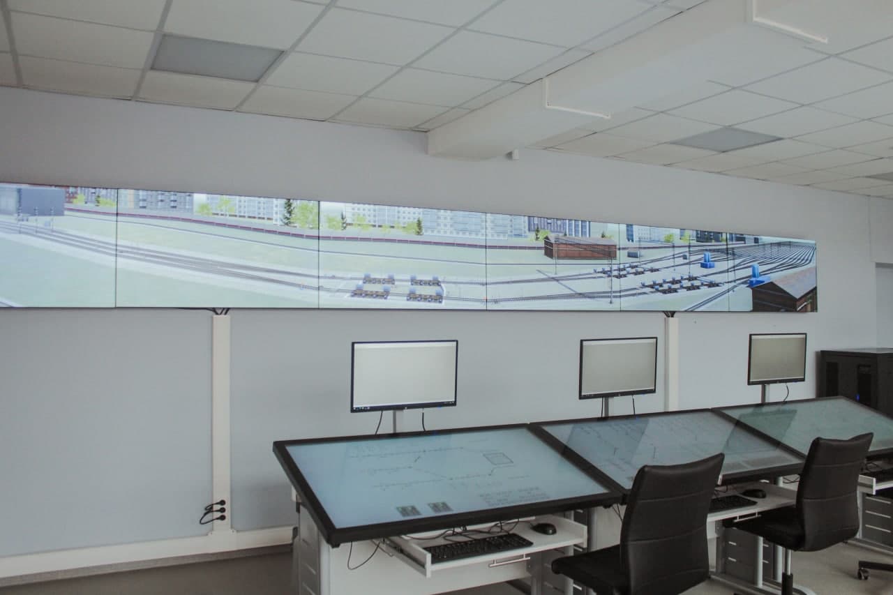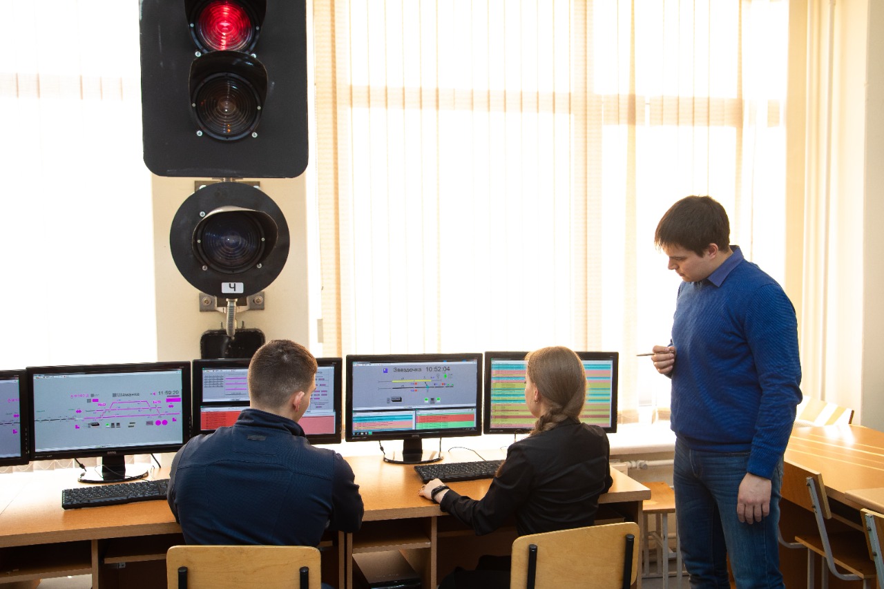 -Лаборатория тренажерного класса кафедры «Электроподвижной состав» позволяет сформировать базовые навыки в изучении систем локомотива, работы оборудования, управления и сценариев поведения в различных поездных ситуациях.