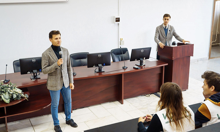 Участников акции приветствовал проректор по воспитательной работе и молодежной политике ИрГУПС Артем Миронов, он также присоединился к написанию Диктанта.