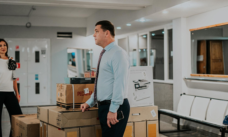 В составе груза находятся моноблоки, сервер, коммутационное оборудование, оргтехника и лабораторное оборудование.