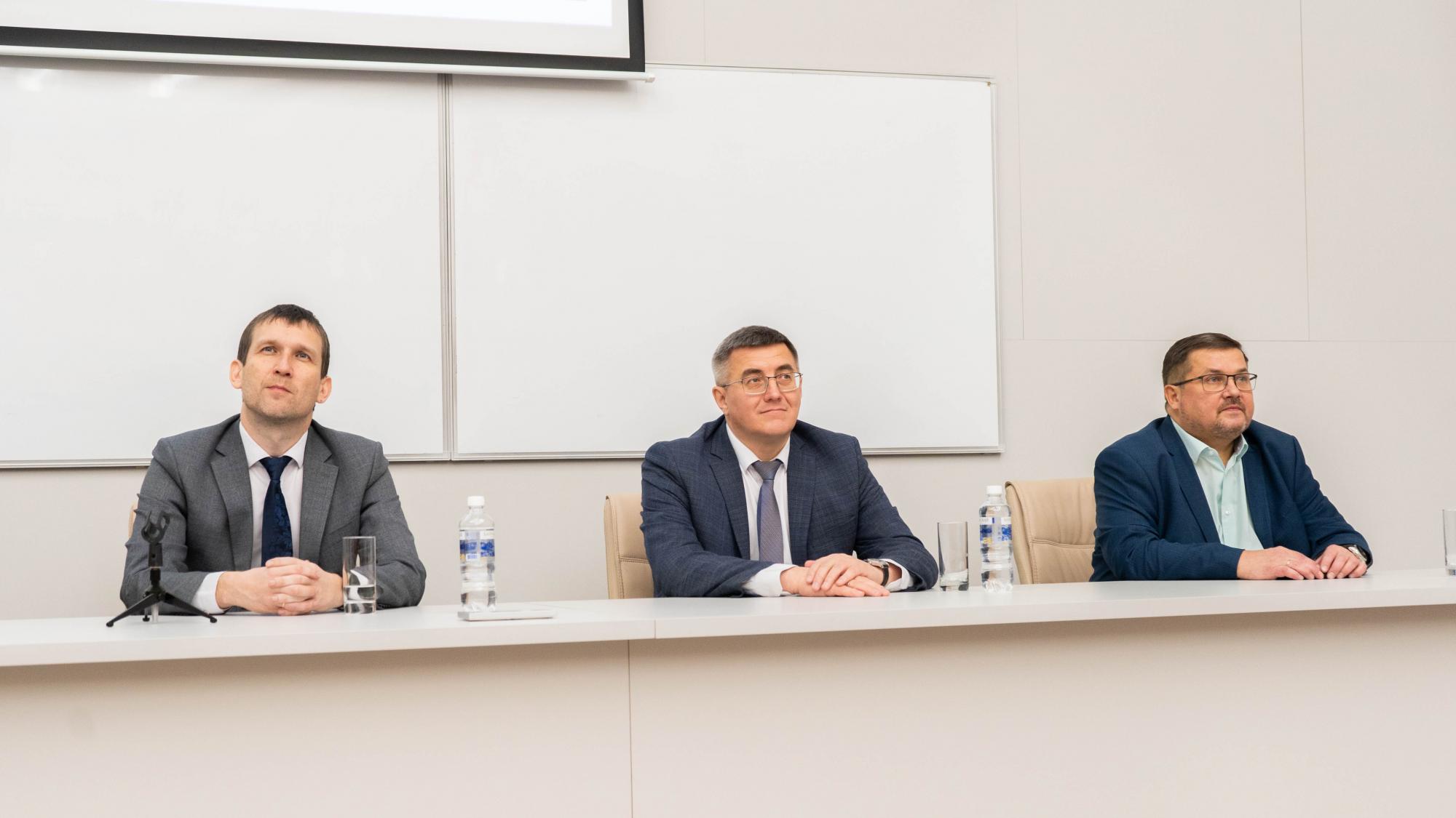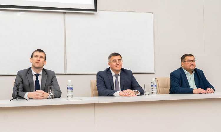 Владимир Евгеньевич посетил Университет в рамках рабочего визита совместно с представителями Восточно-Сибирской железной дороги – филиала ОАО «РЖД», среди которых заместитель главного инженера Виталий Чесноков, начальник службы технической политики Алексей Самолюк и начальник Восточно-Сибирского центра инновационного развития ОАО «РЖД» Надежда Глухарева.