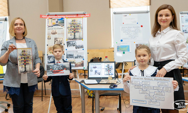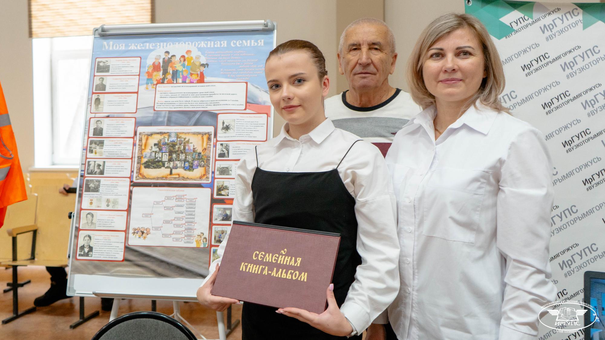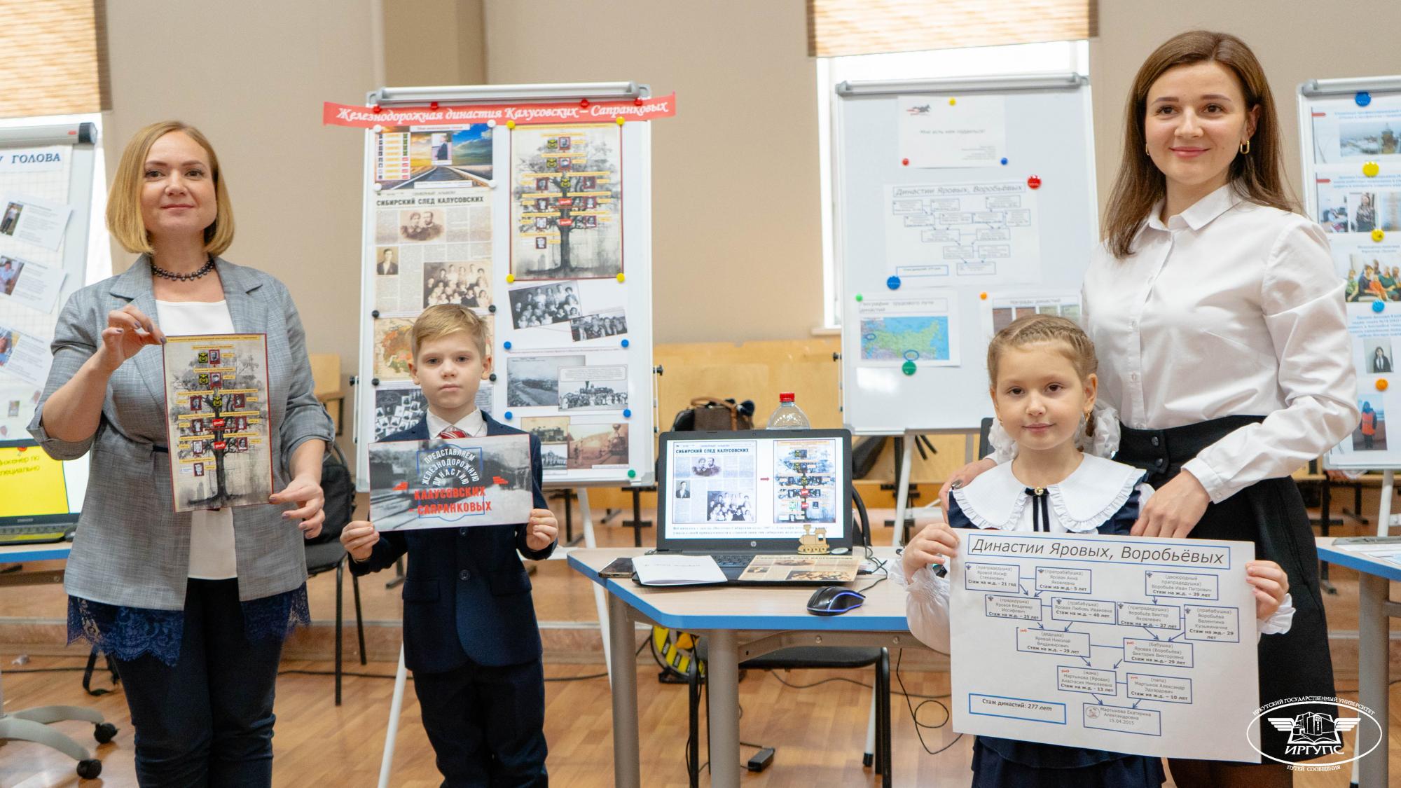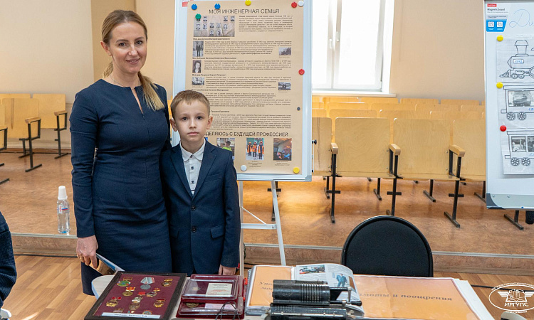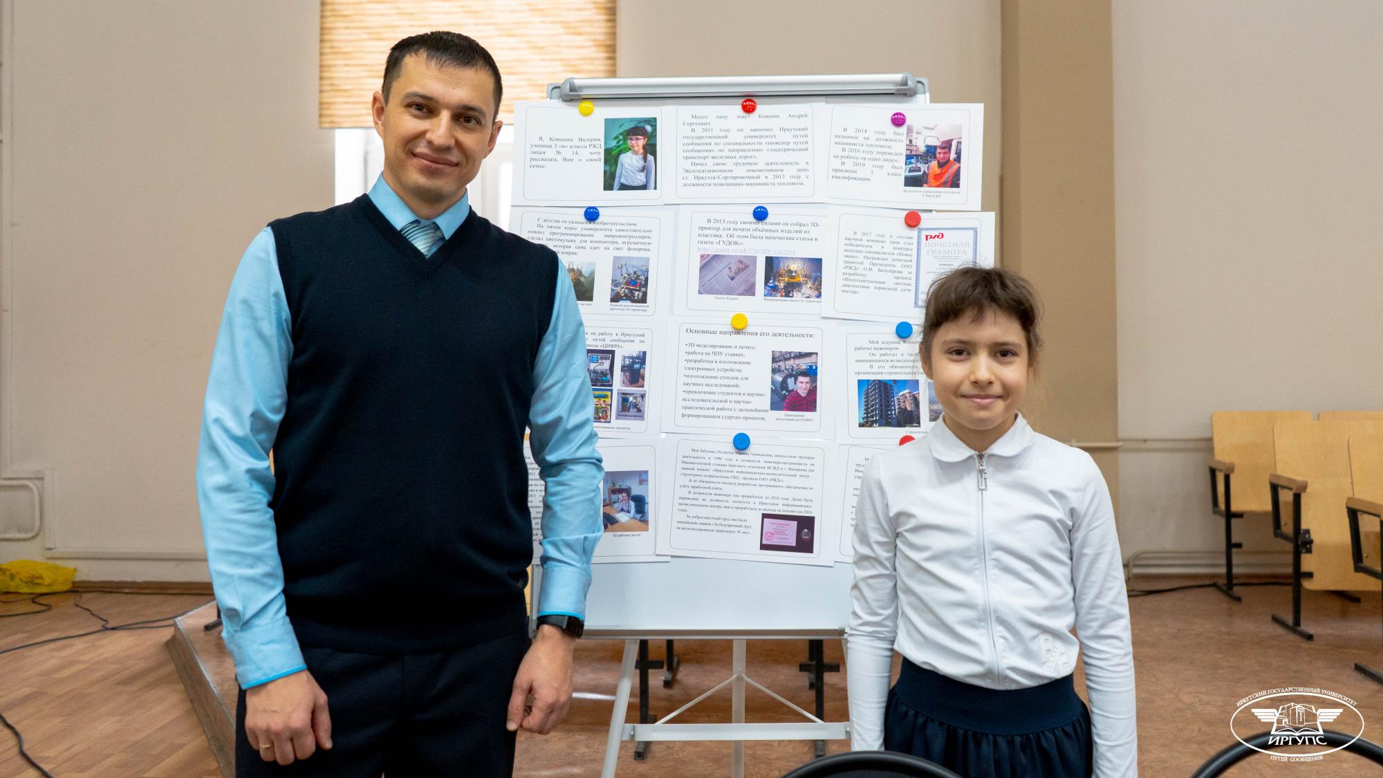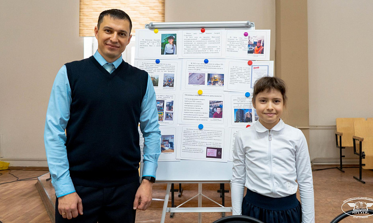 Инженер стартап-школы «ЦИФРА» ИрГУПС Андрей Ковшин вместе со своей дочерью Валерией, ученицей РЖД лицея № 14, представили посетителям выставки свою семейную династию инженеров, рассказав о разработках и проектах представителей их семьи.