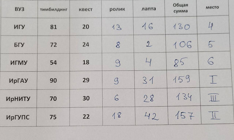 В соревнованиях поборолись за победу: ИрГУПС, ИГМУ, ИрНИТУ, БГУ, ИГУ, ИрГАУ.