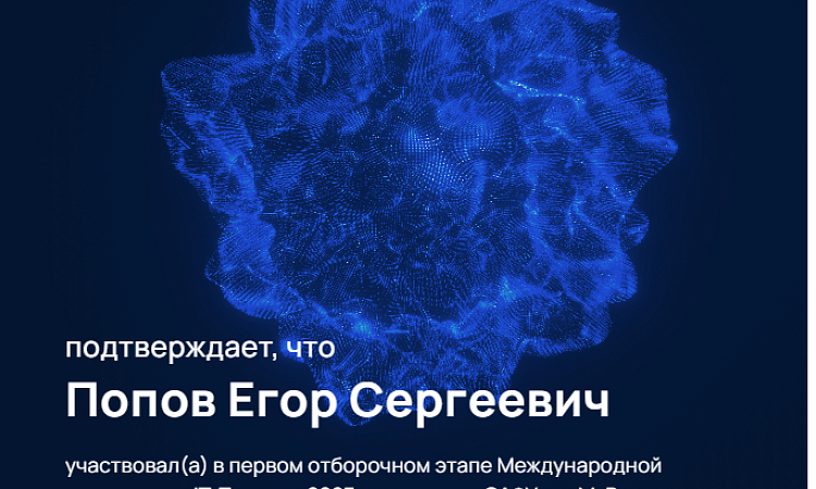 Магистрант 1 курса ИрГУПС Егор Попов по направлению «Информационная безопасность» прошел отборочный этап с результатом 90% (180 баллов).