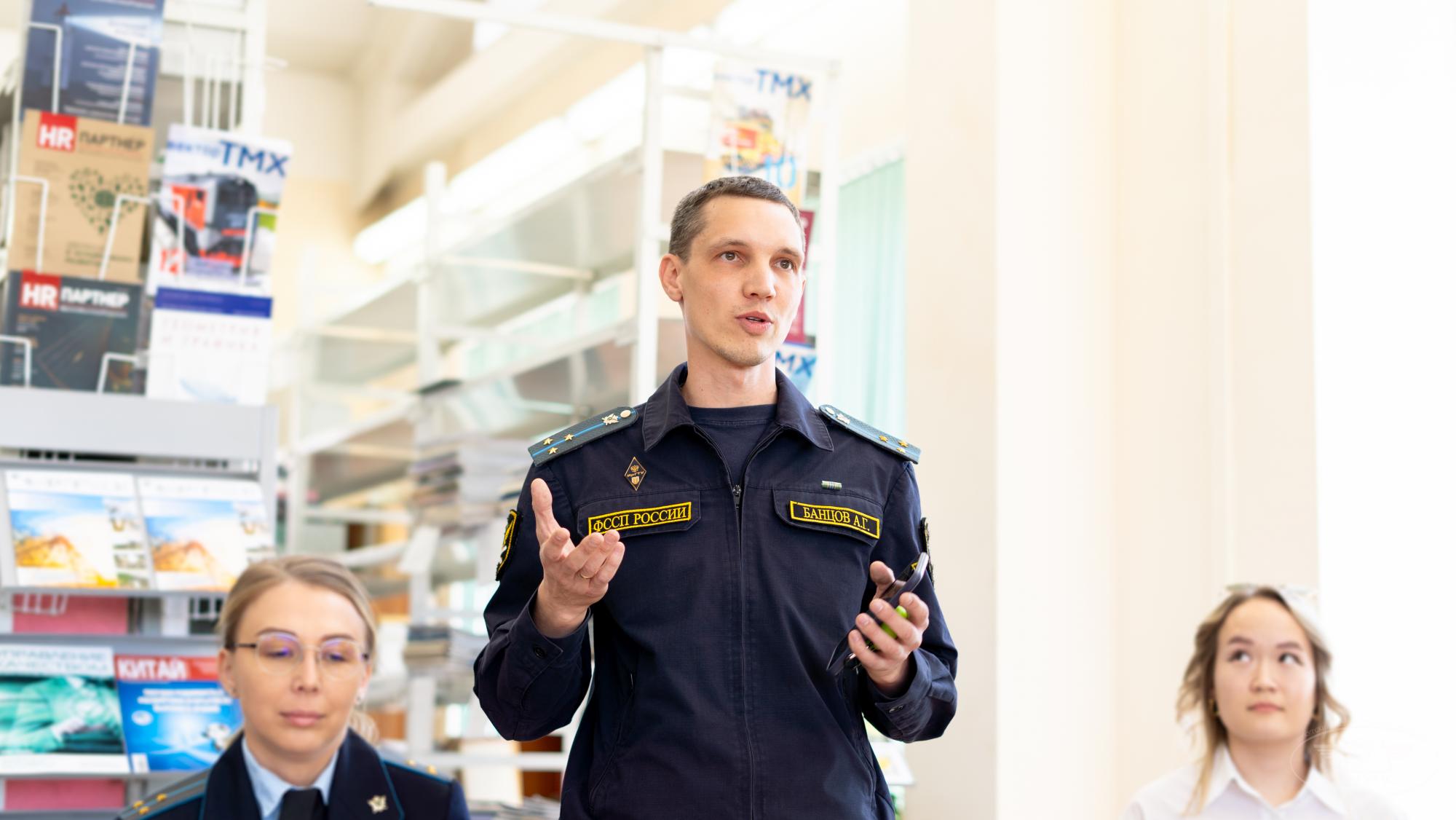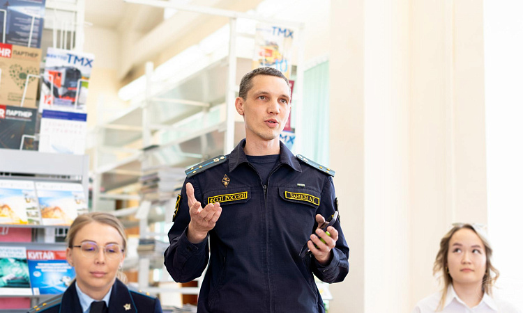 Перед обучающимися с лекцией выступили врио начальника отдела организации профессиональной подготовки и воспитательной работы Артем Банцов, главный инспектор отдела организации исполнительского производства Екатерина Бова и врио начальника отдела организации обеспечения установленного порядка деятельности судов Андрей Поздняков.