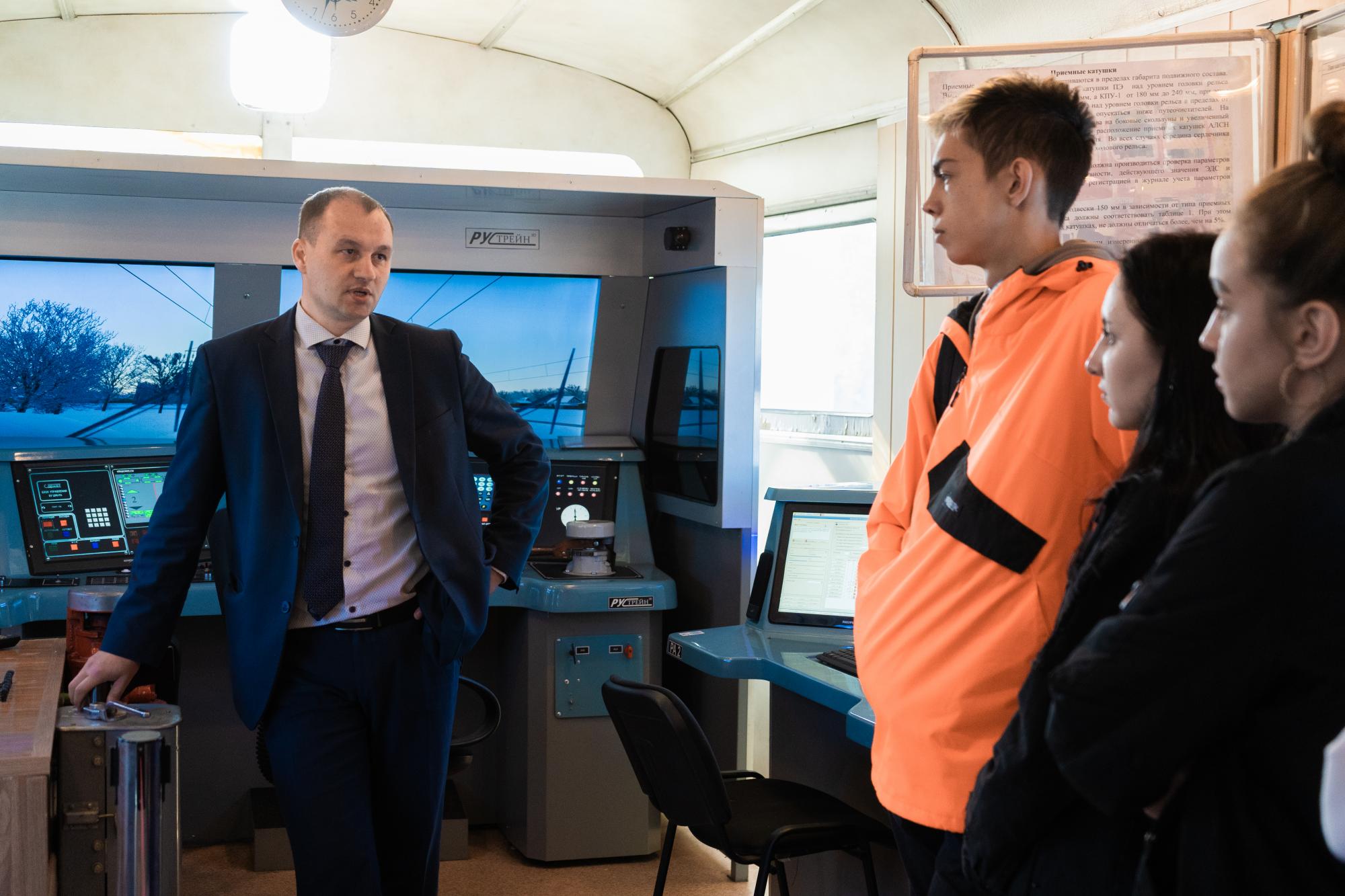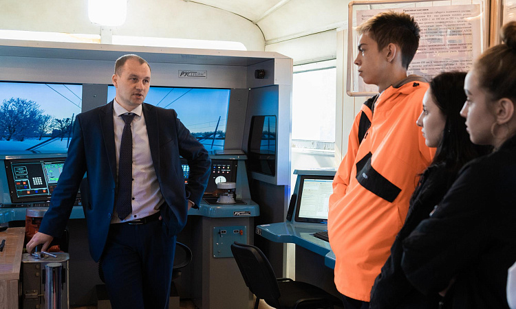Вторым пунктом экскурсионной программы стала Восточно-Сибирская дирекция моторвагонного подвижного состава. Там первокурсникам Иркутского государственного университета путей сообщения продемонстрировали работу учебных тренажеров ДМВ. Студентам удалось попробовать себя в управлении локомотивом в различных штатных и аварийных режимах.