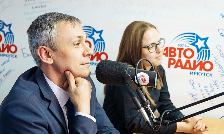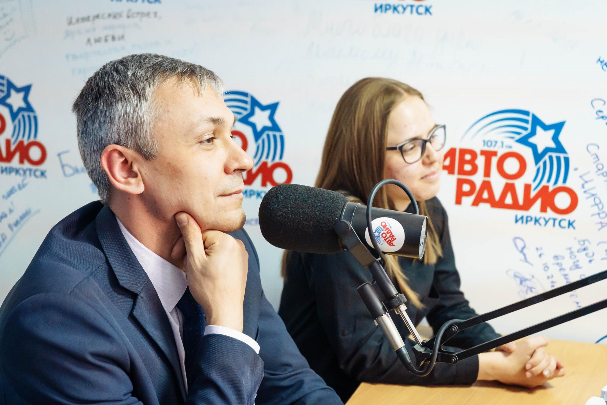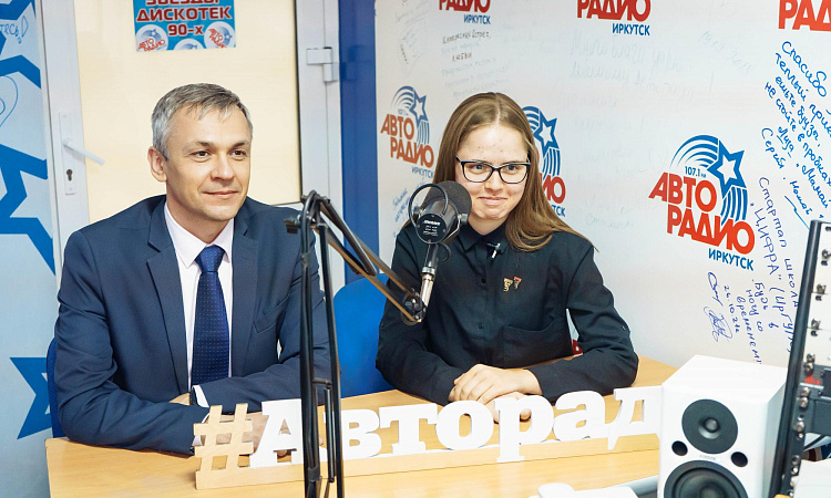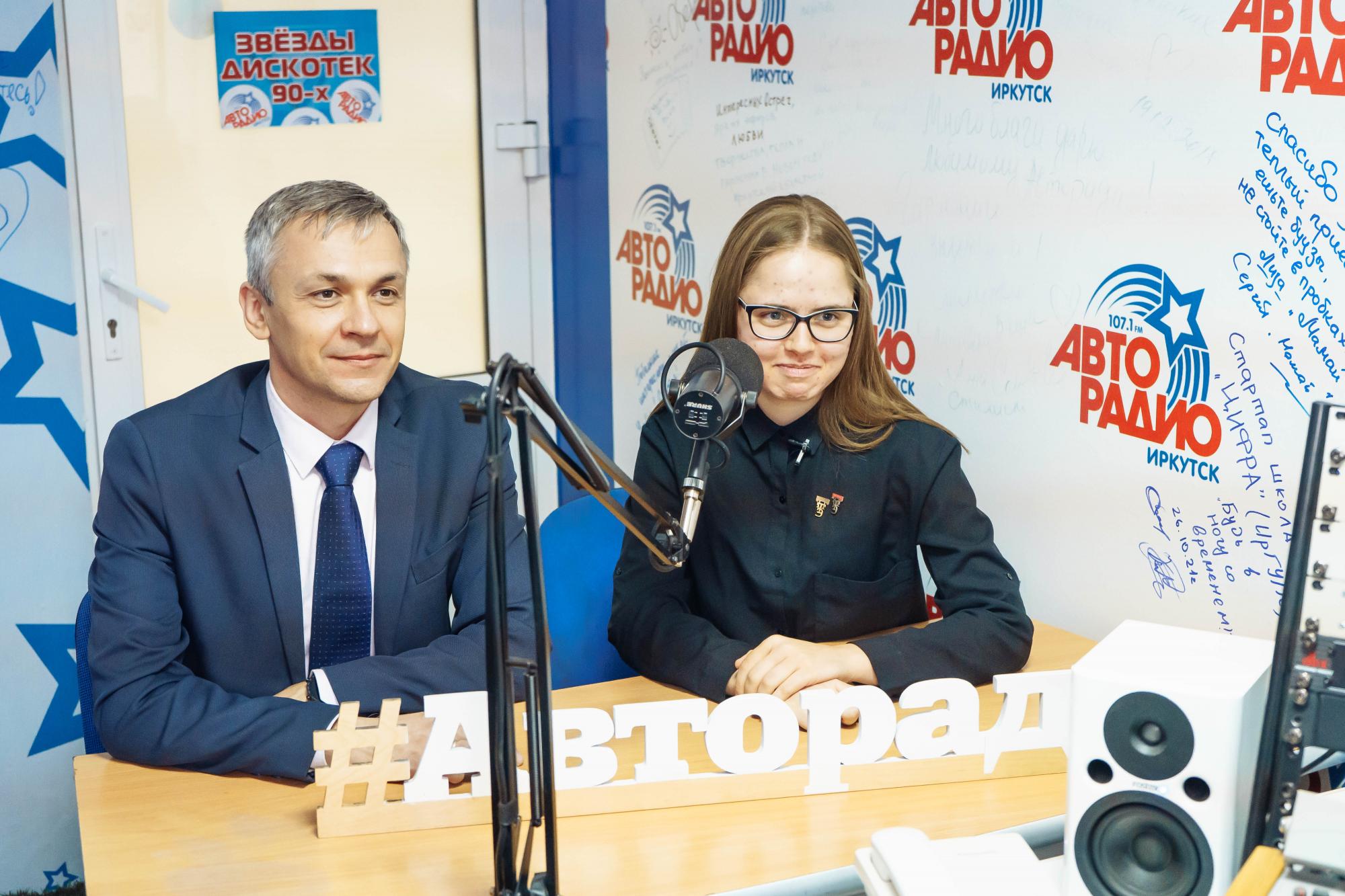 Первый проректор ИрГУПС Юрий Анатольевич Трофимов и студентка 1 курса специальности «Эксплуатация железных дорог» Лилия Кудашева побывали на "Авторадио-Иркутск"