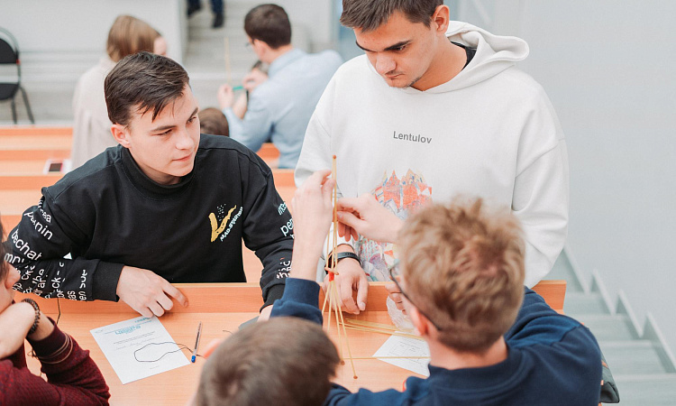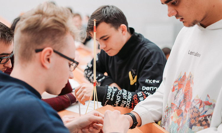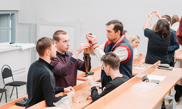 Команды вели переговоры, строили башни из макарон, делали дальнемагистральные самолеты из бумаги, строили прочные креативные мосты. Работы выполнялись в условиях поставленного времени и ограниченных ресурсов.