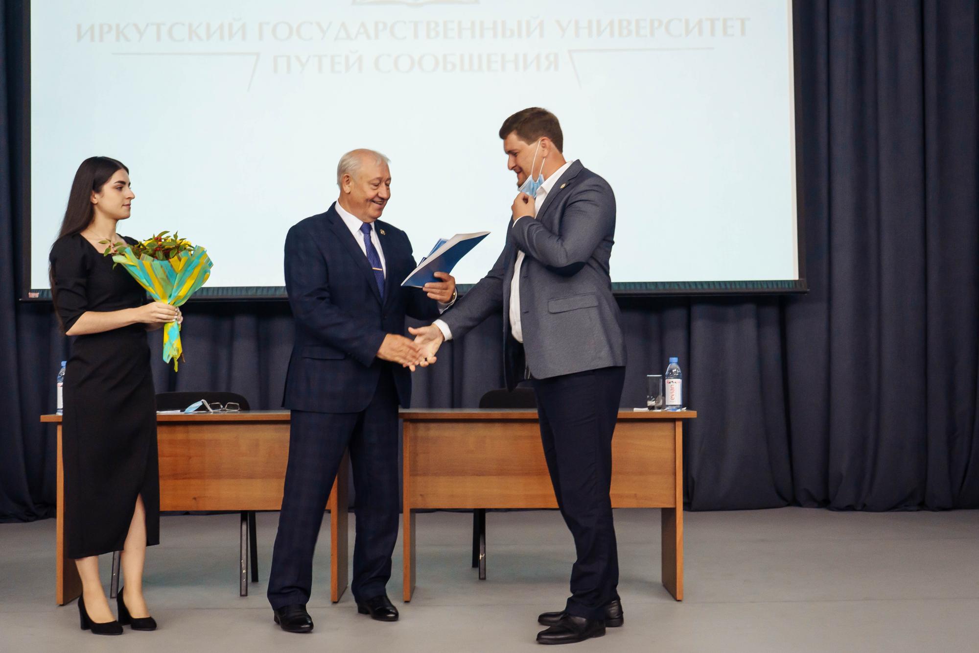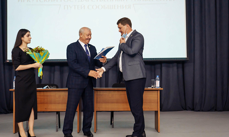 В завершении встречи и.о. ректора Андрей Хоменко поблагодарил преподавателей за работу и вручил благодарности Министра транспорта РФ Виталия Савельева за большой личный вклад в подготовку квалифицированных специалистов для транспортной отрасли - Марине Дмитриевой, доценту кафедры «Электроэнергетика транспорта», Павлу Иванову, доценту кафедры «Электроподвижной состав» и Евгению Дульскому, доценту кафедры «Вагоны и вагонное хозяйство».
