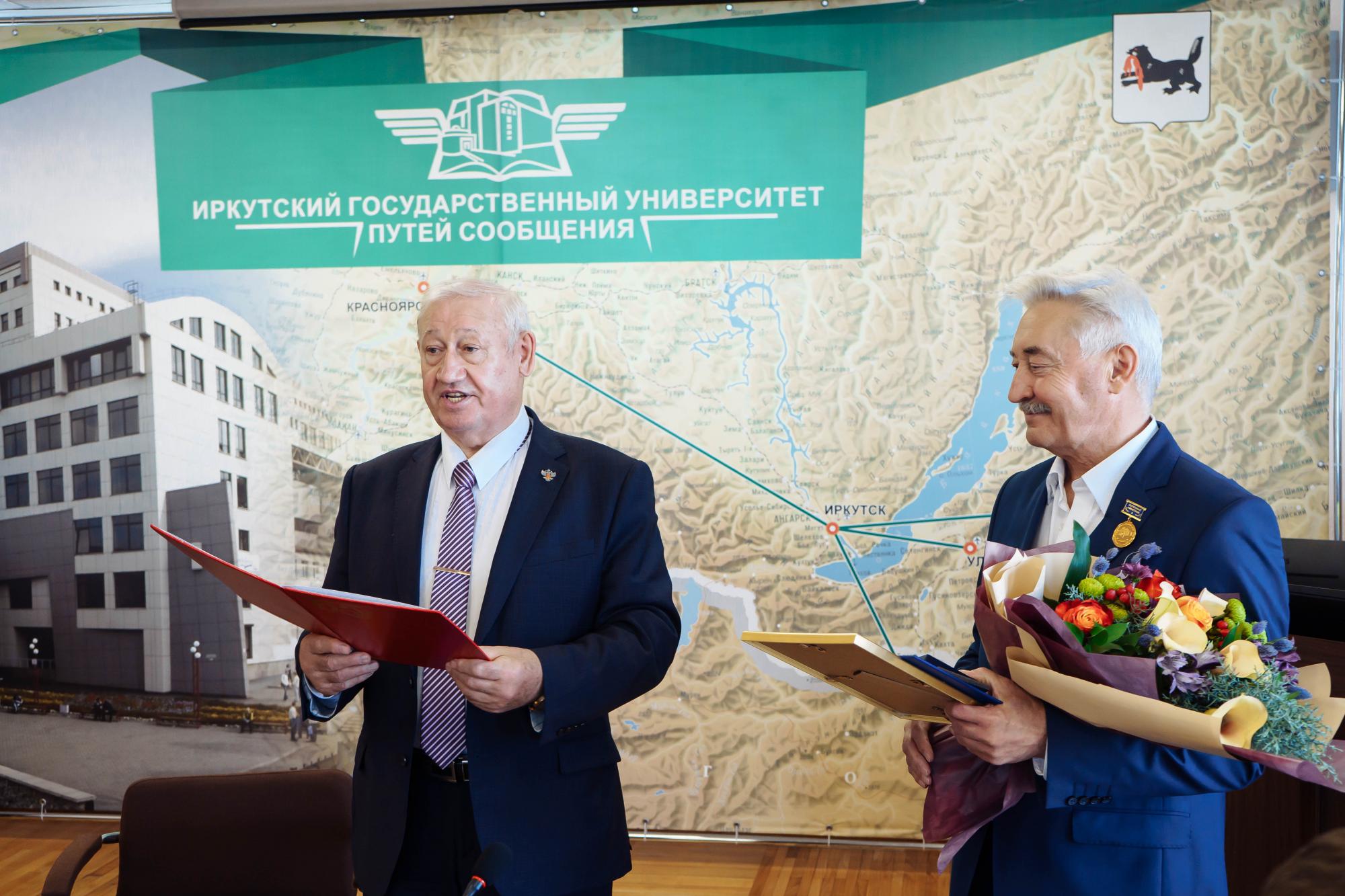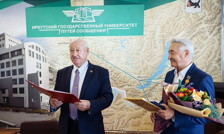 Награждение состоялось на собрании коллектива университета в честь 65-летнего юбилея Виктора Викторовича Михайлова. И.о. ректора ИрГУПС Андрей Хоменко вручил юбиляру знак «Почетный работник ИрГУПС» и поздравил с праздником!