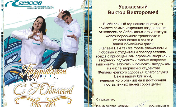 Виктору Викторовичу в этот день пришло много поздравительных адресов. В том числе, благодарственное письмо от имени Губернатора Иркутской области Игоря Кобзева зачитал и вручил юбиляру Андрей Хоменко.