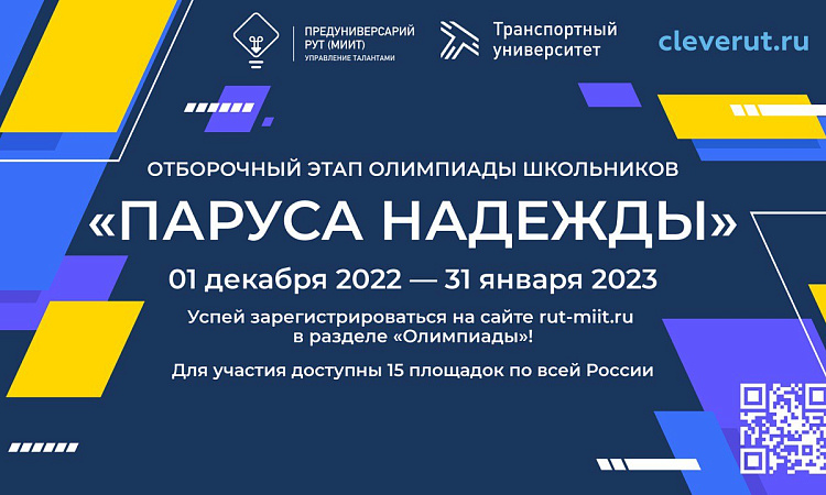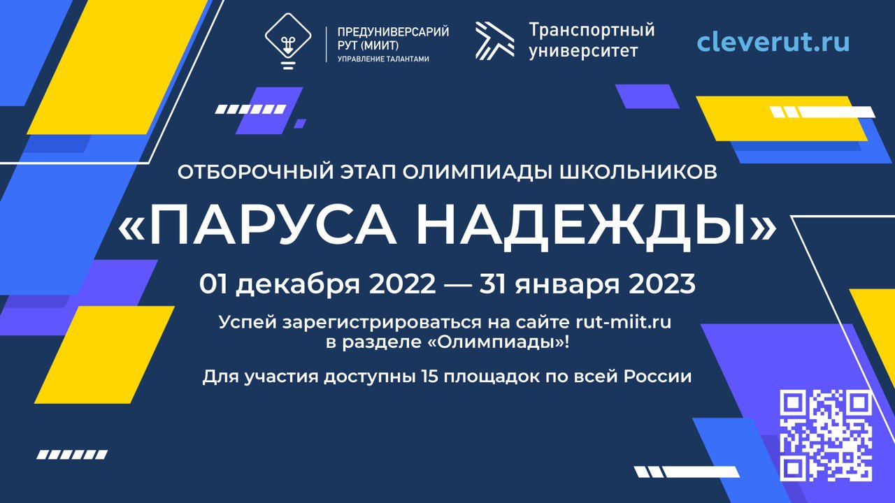 Российский университет транспорта приглашает учеников школ и гимназий 9-11 классов принять участие в межрегиональной отраслевой олимпиаде школьников «Паруса надежды», которая пройдет по двум профилям: