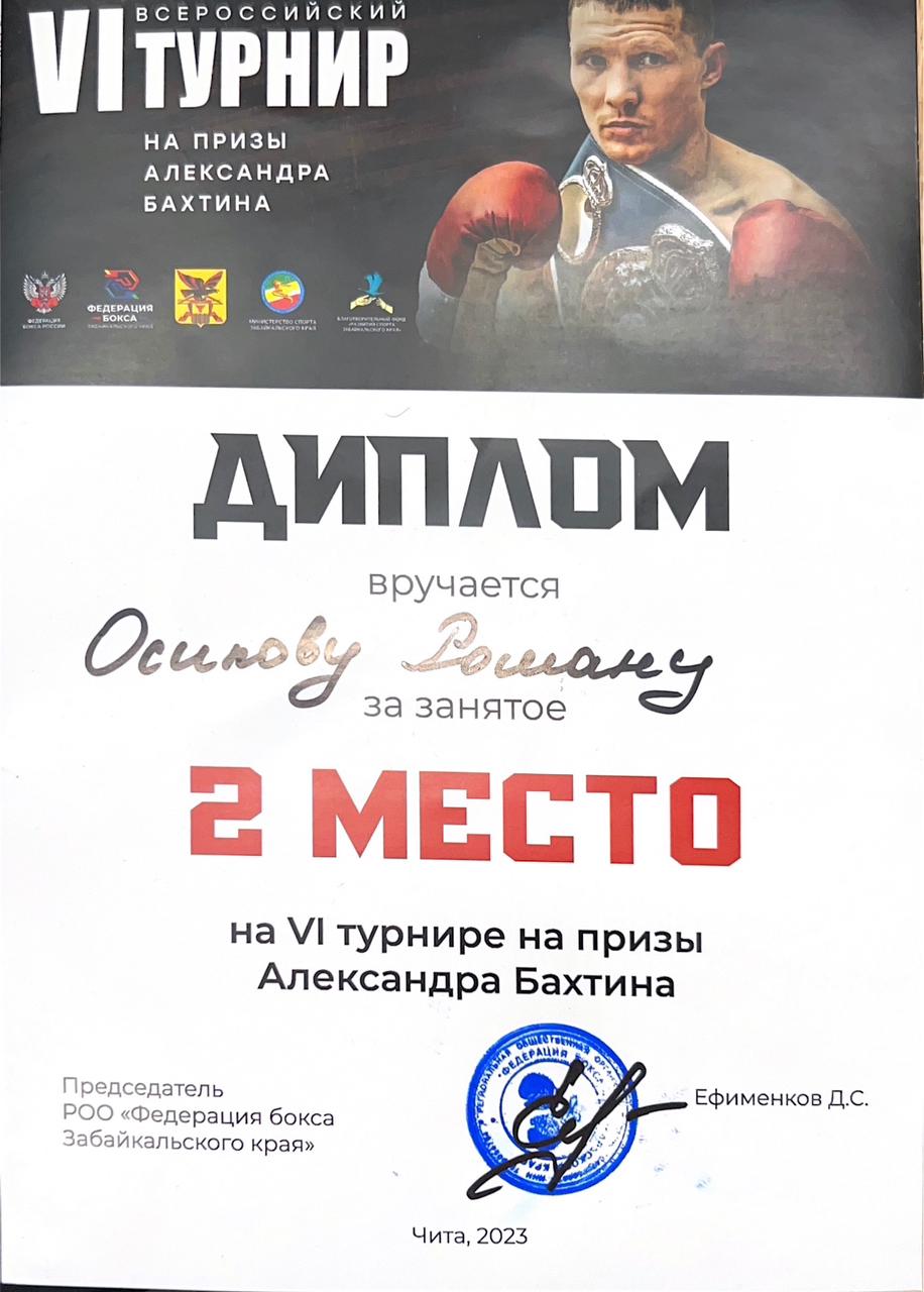 По итогам Всероссийского турнира Роман стал серебряным призером, одержав победу над оппонентами из Забайкальского края (КМС) и Республики Бурятия (призер России, МС).