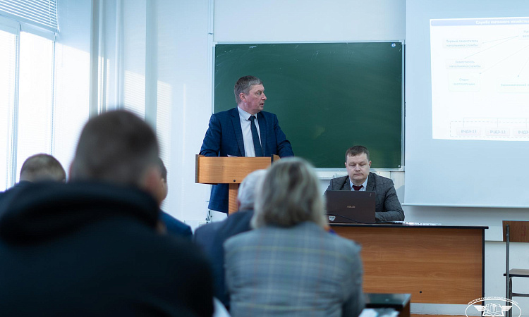 Начальник службы вагонного хозяйства Владимир Лобов рассказал студентам об основных и целевых задачах вагонного комплекса ВСЖД на сегодняшний день. Так в перспективных направлениях развития он назвал совершенствование систем технического обслуживания и ремонта грузовых вагонов, повышение компетенций персонала, развитие системы диагностики подвижного состава и др.