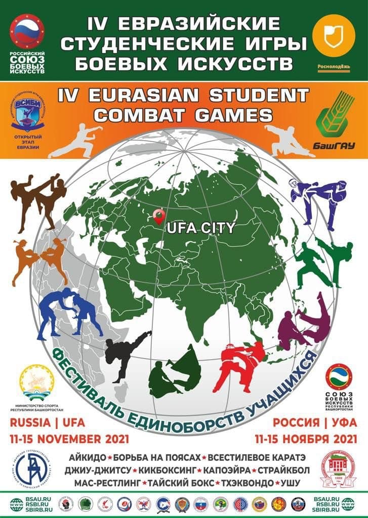 С 11 по 15 ноября в Башкирском государственном аграрном университете состоятся IV Евразийские Студенческие Игры боевых искусств. В соревнованиях примут участие команды средних специальных и высших учебных заведений регионов России и стран Евразии.