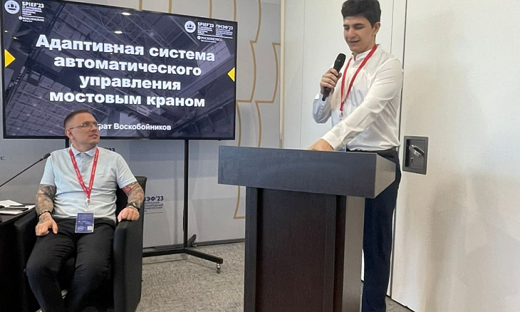 Баграт презентовал проект «Адаптивная система автоматического управления мостовым краном», рассказав о его зарождении и этапах реализации. По словам студента, тема входит в список наиболее актуальных задач для ОАО «РЖД». Команда ИрГУПС разработала систему программно-аппаратного комплекса с упрощенной работой. К тому же, разработанный комплекс может обеспечить надежное автоматическое управление крана мостового типа, добавить новые возможности для увеличения времени и производительности погрузочных и разгрузочных работ.