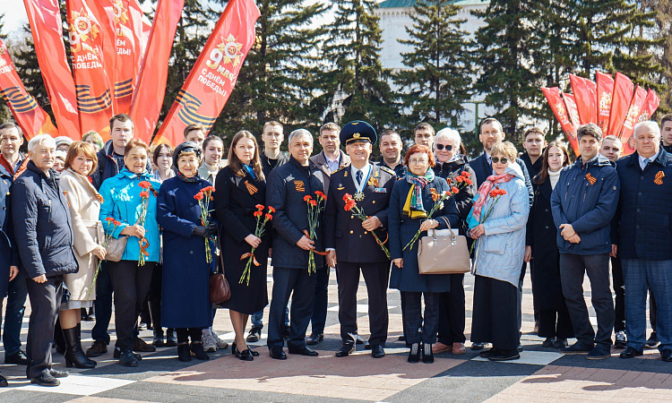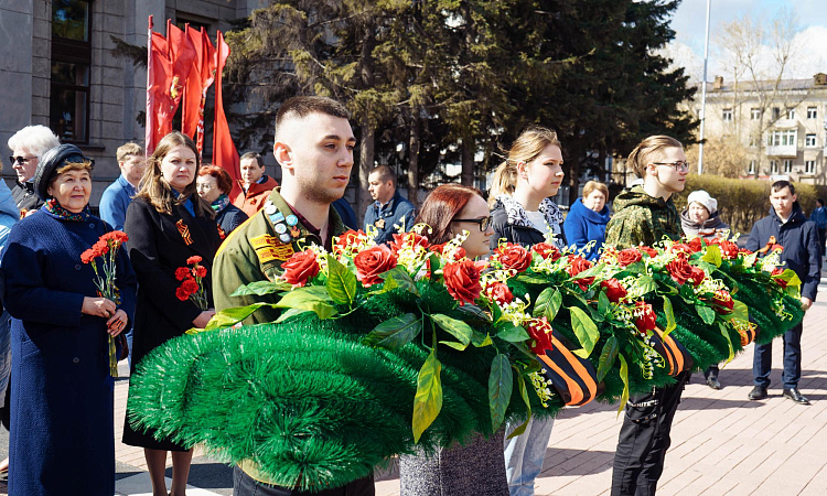 Студенты, сотрудники и преподаватели ИрГУПС возложили гирлянды и цветы к мемориалу Вечный огонь Славы
