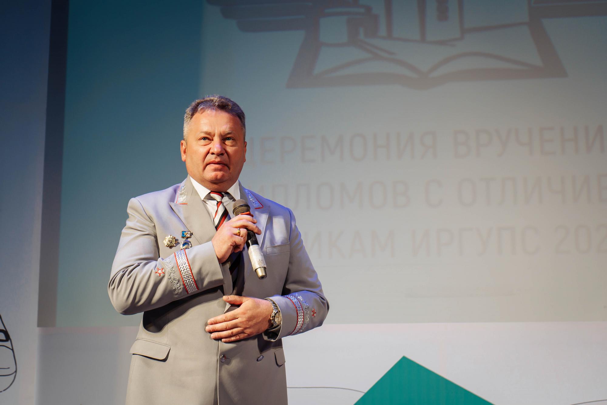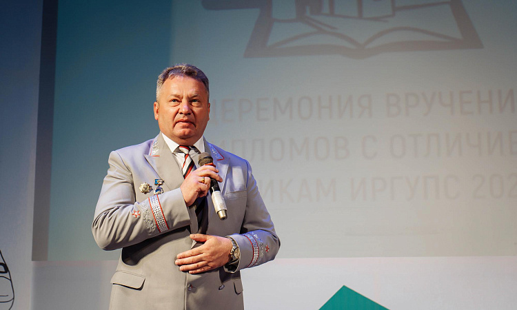 Право первым поздравить выпускников и открыть торжественную церемонию вручения дипломов за отличную учебу представилось президенту Иркутского государственного университета путей сообщения Андрею Хоменко.