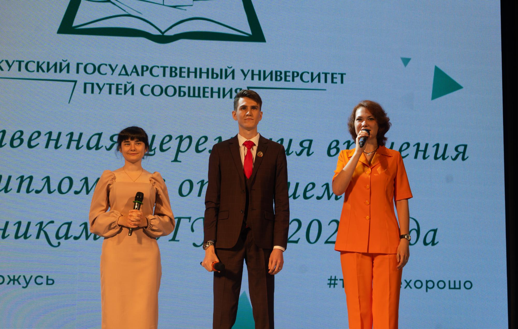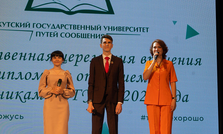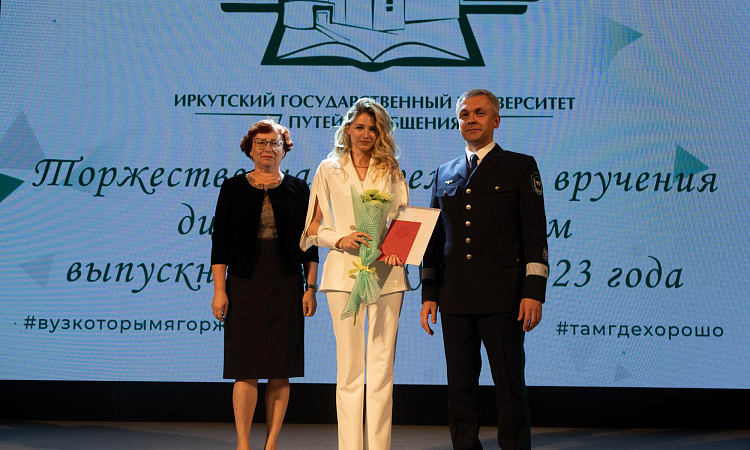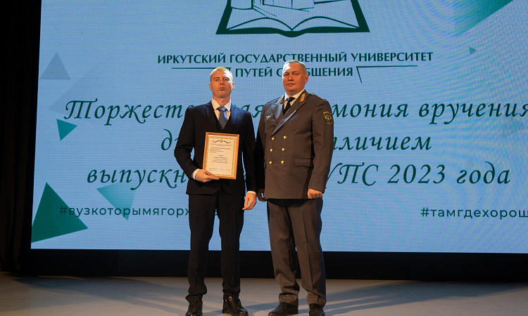 В Иркутском государственном университете путей сообщения лучшим выпускникам 2023 года торжественно вручили дипломы с отличием, нагрудные знаки Министерства транспорта Российской Федерации, именные часы начальников Восточно-Сибирской и Красноярской железных дорог – филиалов ОАО «РЖД», благодарственные письма родителям и свидетельства о предоставлении гранта на разработку выпускной квалификационной работы.