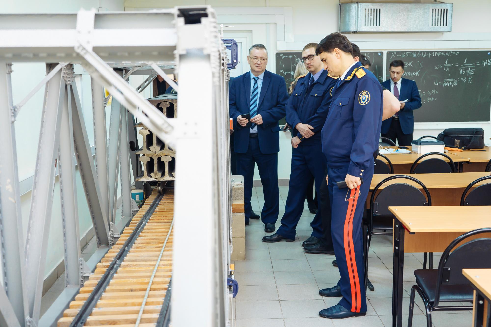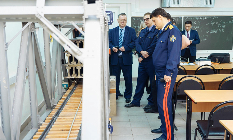 Во время своего визита в ИрГУПС заместитель председателя СК РФ встретился с заведующими кафедрами университета. Ему были представлены разработки ученых по проектированию и мониторингу мостов, устройства обнаружения деффектов, стояночный тормоз принципиально нового типа и т.д.