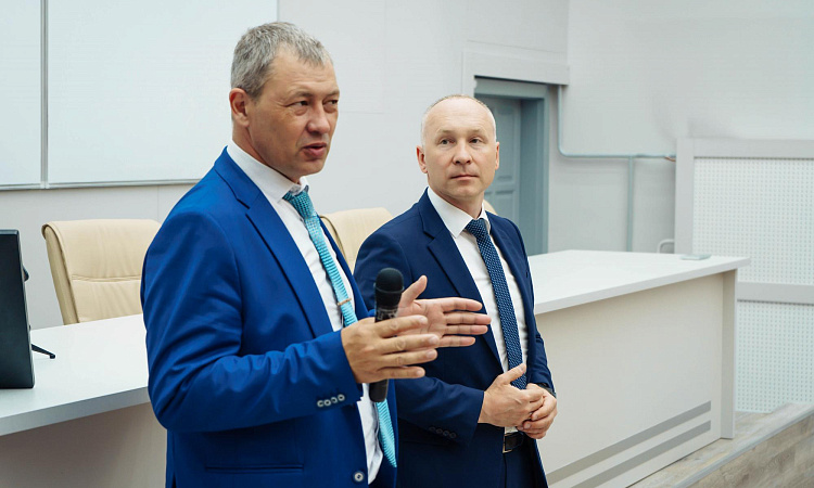 Вместе с Владимиром Никитиным Иркутский государственный университет путей сообщения посетили главный эксперт Департамента организации, оплаты и мотивации труда ОАО «РЖД» Екатерина Руссу и начальник службы управления трудовыми ресурсами и организационной структурой ВСЖД Андрей Дадаев.
