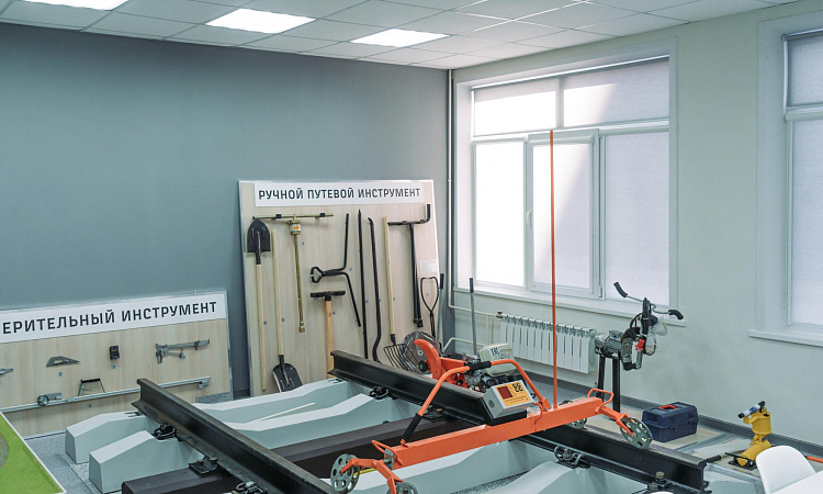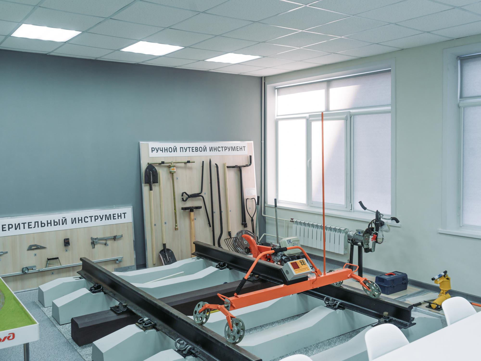 Класс оснащен макетом с действующим железнодорожным подвижным составом для выполнения ремонтных путевых работ, стендами с ручным путевым и измерительным инструментами, макетом одиночного стрелочного перевода с возможностью автоматического перевода стрелки, макетом рельсов с различными видами дефектов, возникающих в процессе эксплуатации. Также для наибольшего погружения в учебный процесс создан участок железнодорожного пути с различными видами промежуточных скреплений, оборудованный ультразвуковым дефектоскопом.
