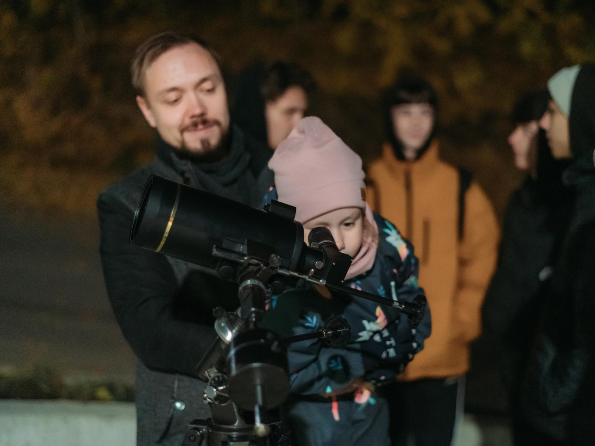 Смотрели за Луной в телескопе, фотографировали и знакомились с принципами работы астрономических приборов. Помимо Луны, можно было наблюдать Сатурн и Юпитер.