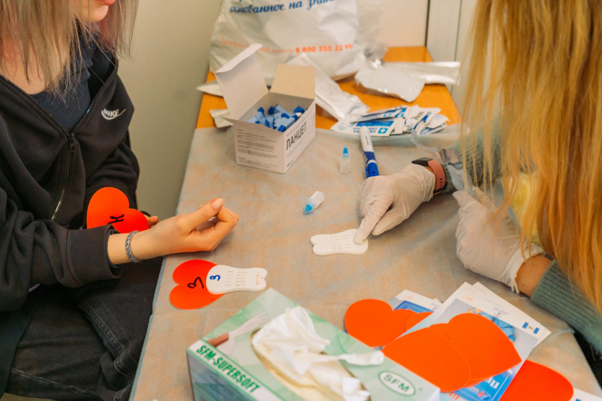 По завершению лекции обучающиеся вуза имели возможность пройти анонимное экспресс-тестирование на антитела к ВИЧ-инфекции, гепатиту С и B, сифилису. Экспресс-тестирование было проведено специалистом по социальной работе ГБУЗ «ИОЦ СПИД» Татьяной Гдовской.