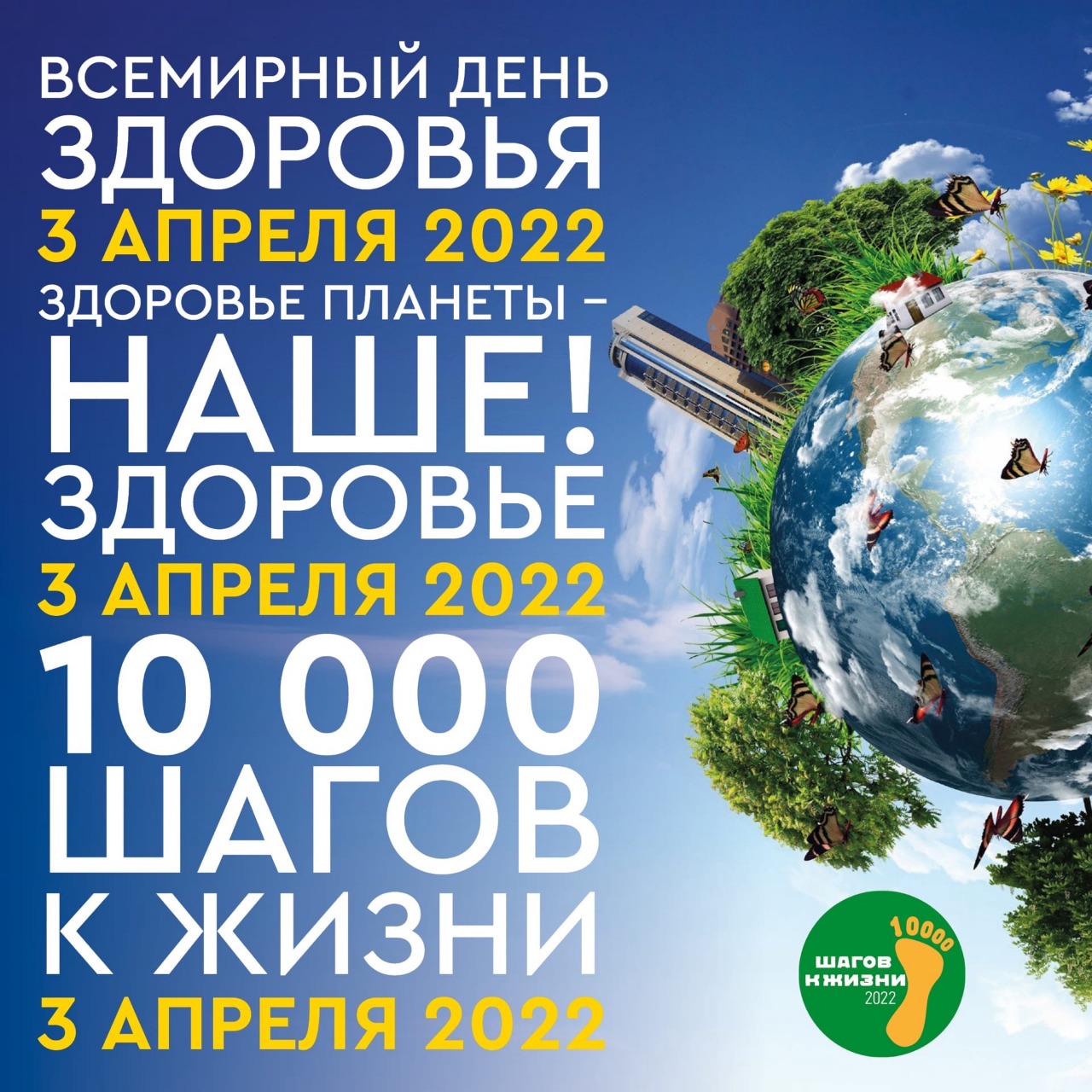 3 апреля 2022 года Всероссийская акция «10 тысяч шагов к жизни» пройдет одновременно в нескольких сотнях городов и населенных пунктов во всех субъектах РФ. Акция приурочена ко Всемирному дню здоровья.