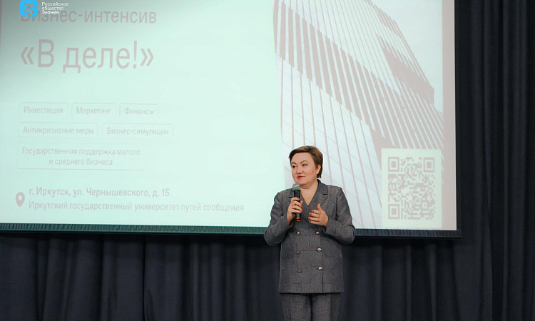 Иркутский государственный университет путей сообщения стал местом встречи инициативной молодежи и проектных команд акселератора «ЦИФРА 2022» с федеральными бизнес-экспертами — спикерами интенсива «В деле!» Российского общества «Знание».
