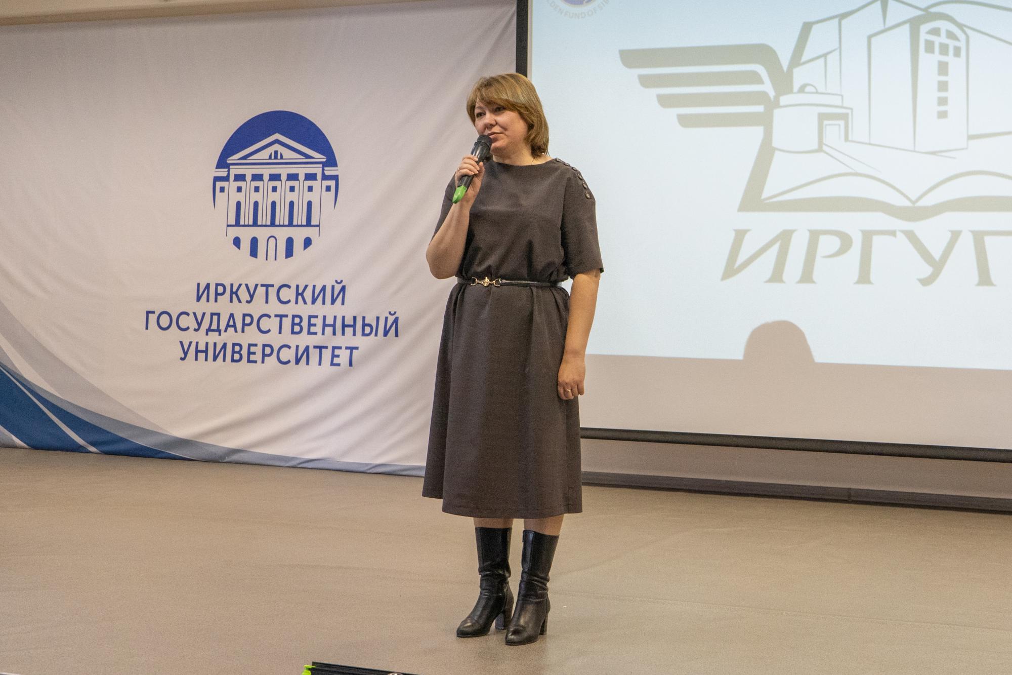 Участников олимпиады поприветствовала и поздравила директор института дополнительного образования ИрГУПС Наталья Олинович: