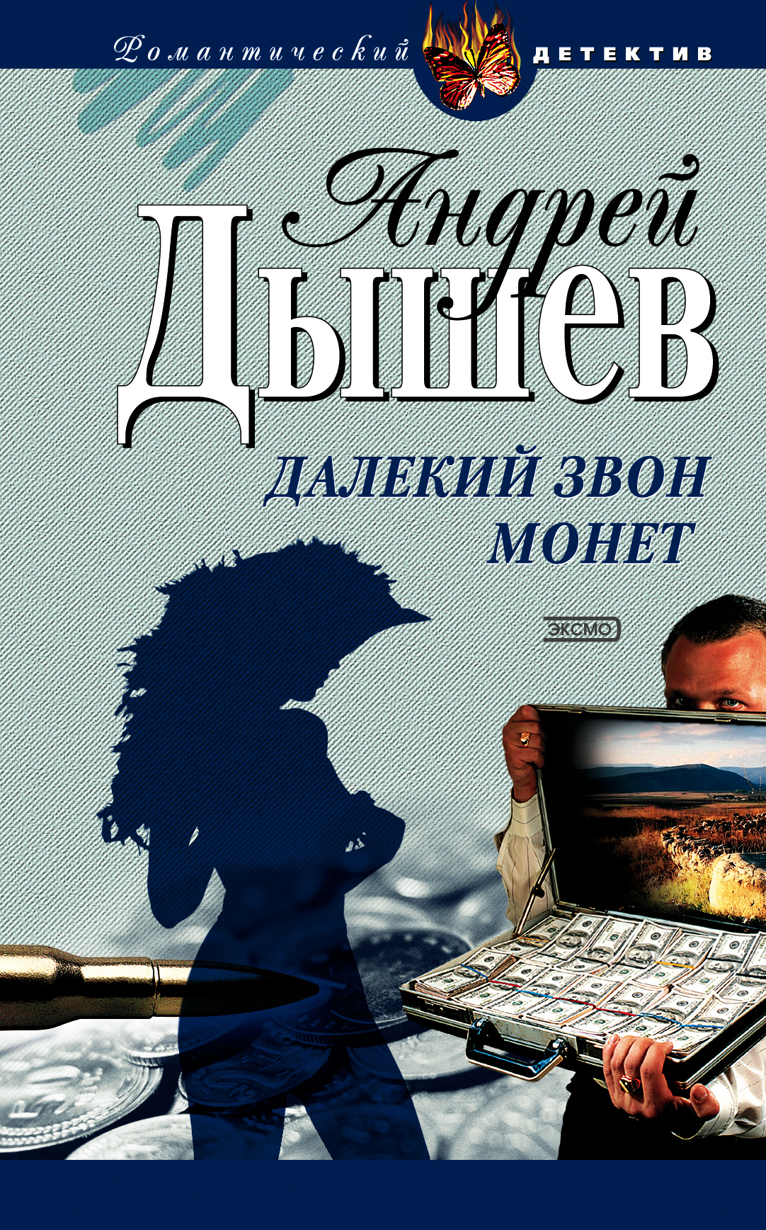 > Дышев, Андрей Михайлович. Далекий звон монет : [повести] / А. М. Дышев. - Москва : Эксмо, 2003. - 412 с. ; п.л. 21,3. - (Романтический детектив). - ISBN 5-699-02967-2 (в пер.). - Текст : непосредственный. Примечания о происхождении: Дар от Ходиной Е. Ю.
