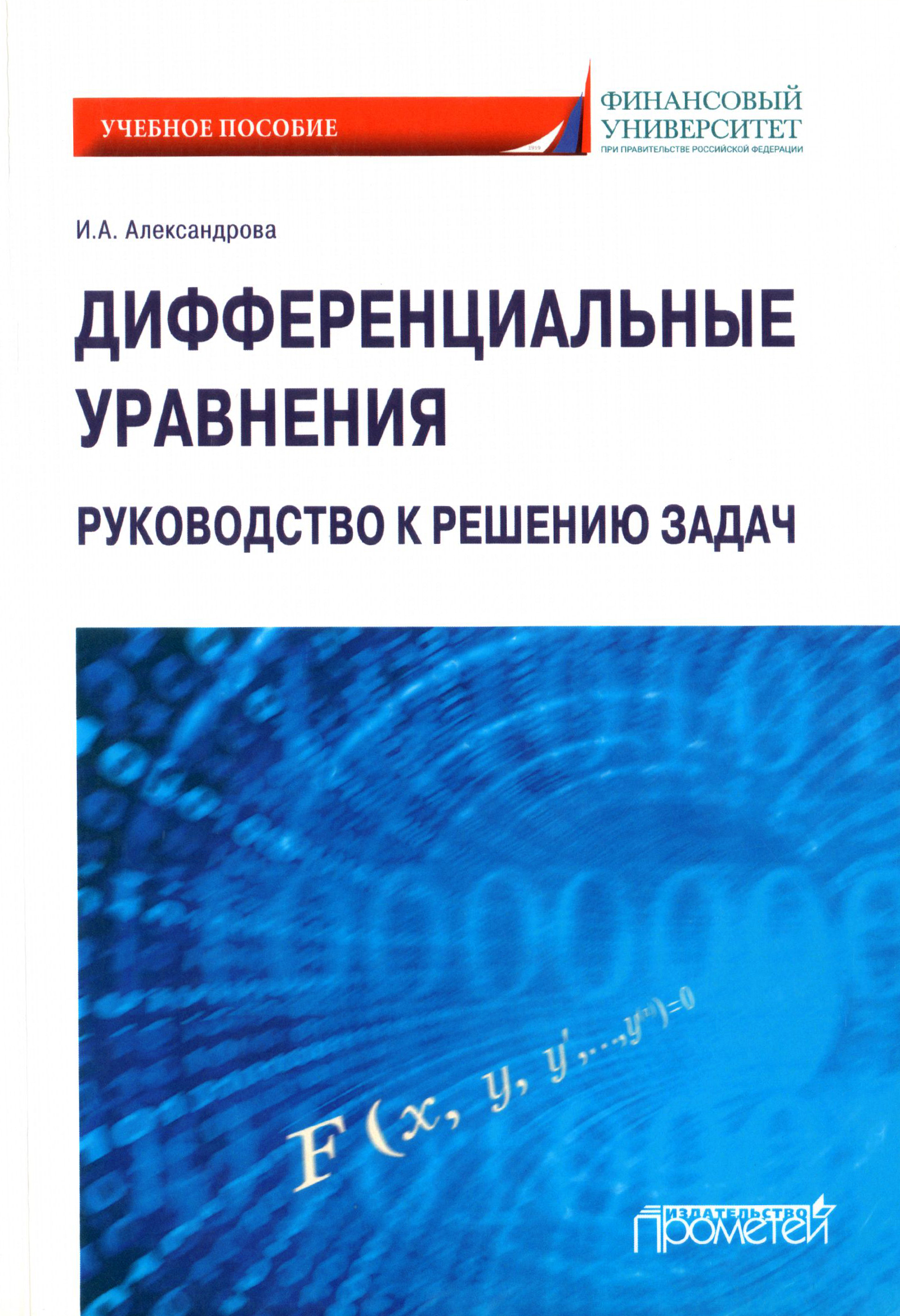 >> Александрова, Ирина Александровна. Дифференциальные уравнения. Руководство к решению задач : учеб. пособие / И. А. Александрова ; Финансовый ун-т при правительстве РФ. - Москва : Прометей, 2020. - 121 с. ; п. п. 7,625. - Библиогр.: с. 121. - ISBN 978-5-907244-45-0. - Текст : непосредственный. Примечания о происхождении: Дар от Артюнина А. И.