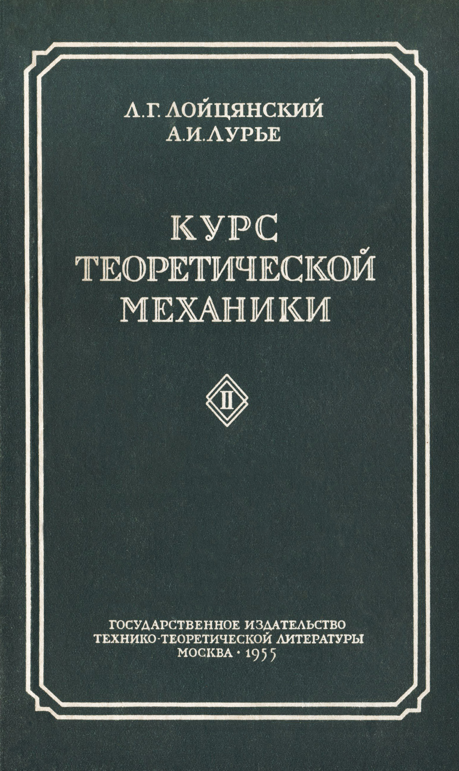 >>> Лойцянский Л. Г. Курс теоретической механики : учеб. пособие / Л. Г. Лойцянский, А. И. Лурье. - Москва : Гос. изд-во техн.-теорет. лит., 1955. - Текст : непосредственный. Т. 2 : Динамика. - Изд. 5-е, перераб. и доп. - 1955. - 595 с. : граф., рис., табл. ; п. л. 37,25. - Предм. указ.: с. 591-595. - (в пер.) Примечания о происхождении: Дар от Артюнина А. И.