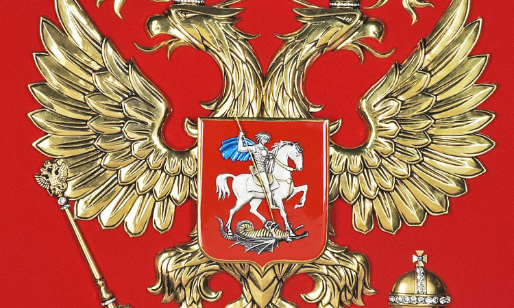 Герб России - это особая эмблема, выполненная в соответствии с геральдическими канонами. Закон «О Государственном гербе Российской Федерации» дает следующее его описание: Государственный герб Российской Федерации представляет собой четырехугольный, с закругленными нижними углами, заостренный в оконечности красный геральдический щит с золотым двуглавым орлом, поднявшим вверх расправленные крылья. Орел увенчан двумя малыми коронами и - над ними - одной большой короной, соединенными лентой. В правой лапе орла - скипетр, в левой - держава. На груди орла, в красном щите, - серебряный всадник в синем плаще на серебряном коне, поражающий серебряным копьем черного, опрокинутого навзничь и попранного конем дракона.