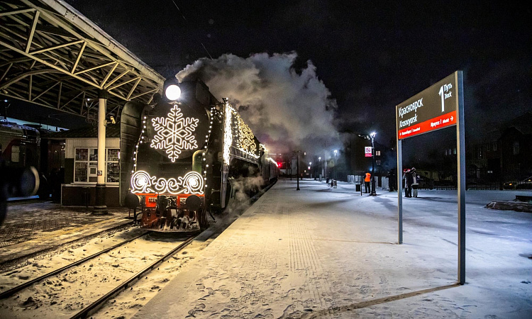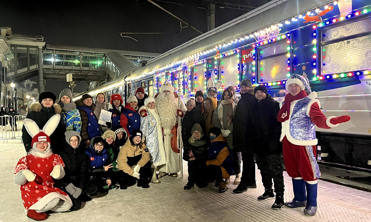 Маршрут поезда проходит более чем через 70 городов. Везде, где делает остановку «Поезд Деда Мороза», посетителей вокзалов ждёт торжественная праздничная программа с участием артистов и аниматоров, которая позволит окунуться в атмосферу зимней сказки и волшебства.