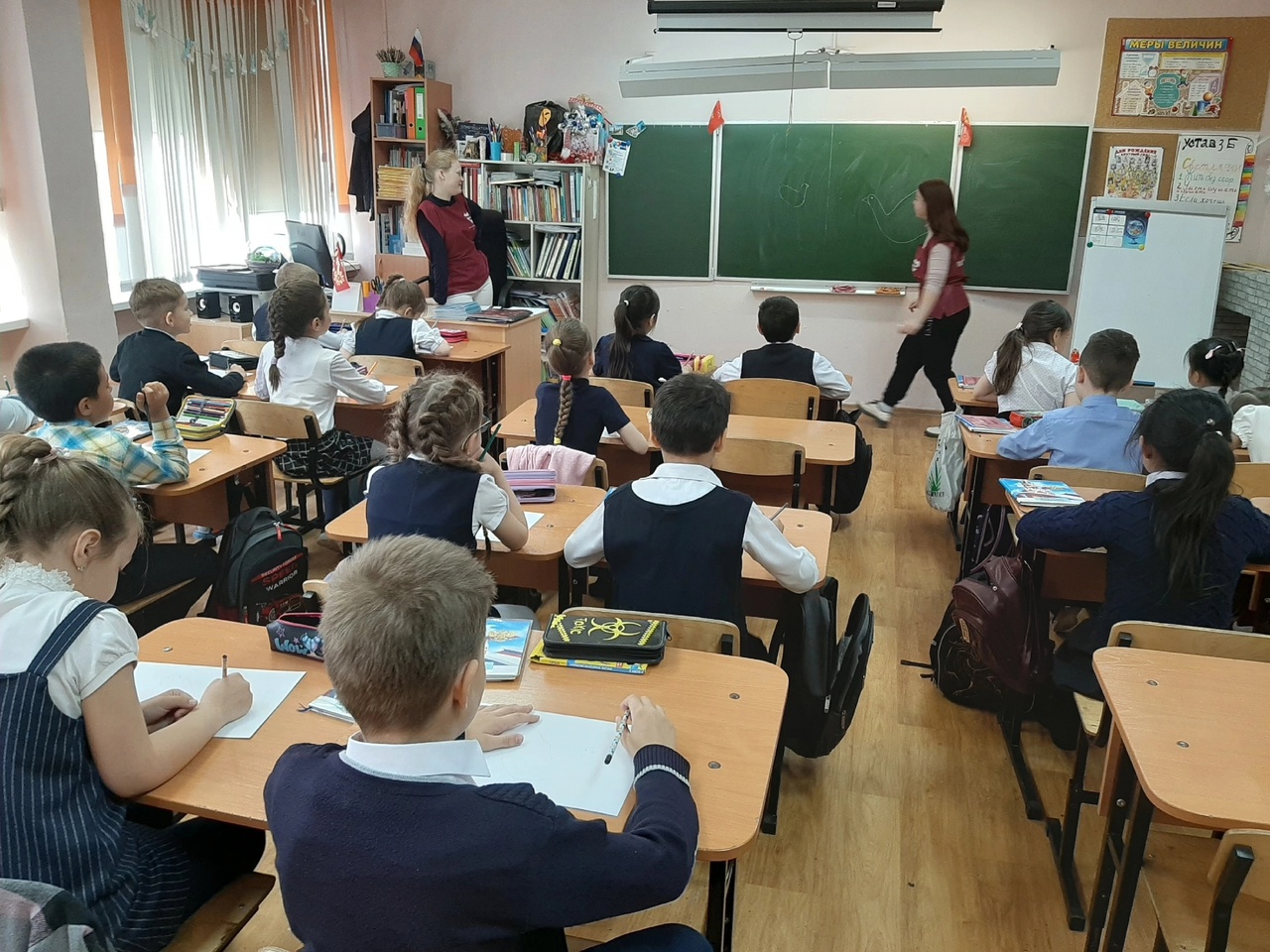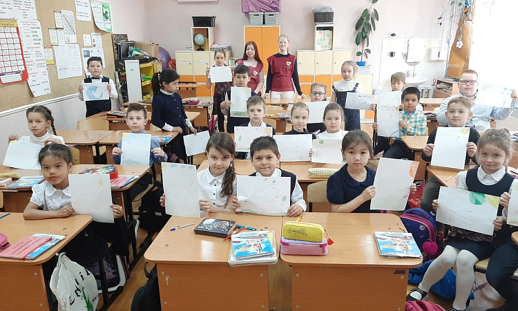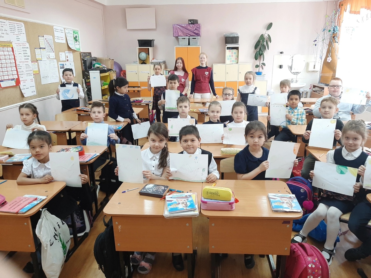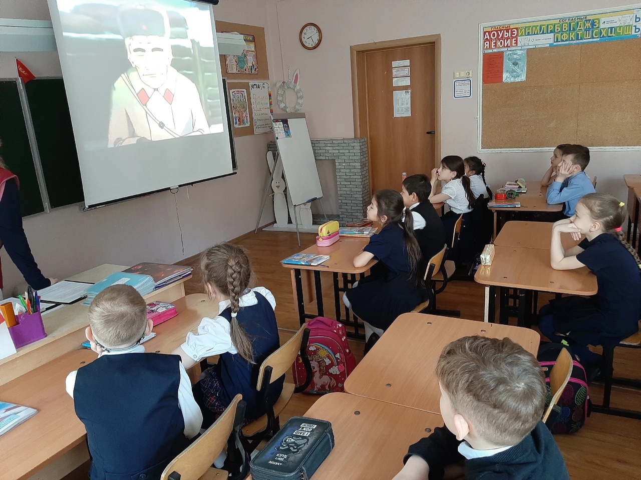 Волонтеры посетили 1А класс школы №21. Помимо чтения рассказов, студенты показали учащимся познавательный мультфильм, провели викторину на знание ВОВ и нарисовали символ мира и добра – Белого голубя.