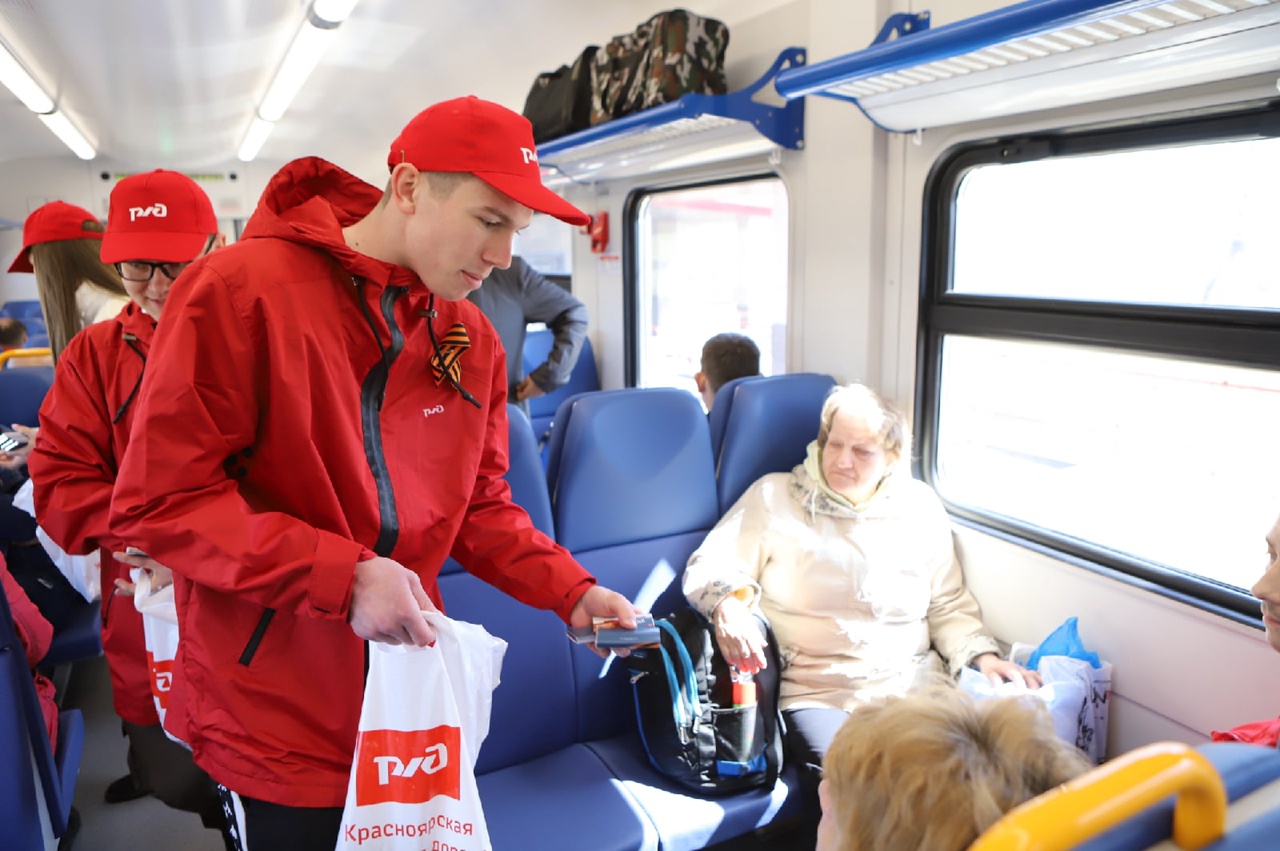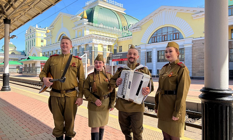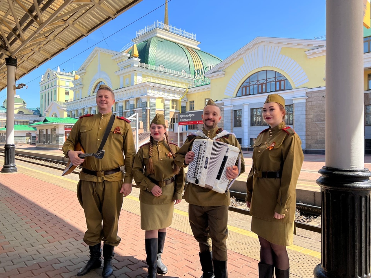 Под аккомпанемент народных инструментов артисты исполнили любимые многими поколениями песни военных лет и песни о войне из знаменитых кинофильмов. Волонтеры поздравили пассажиров с наступающим праздником Днем Победы, а также напомнили о правилах безопасного поведения на железной дороге.