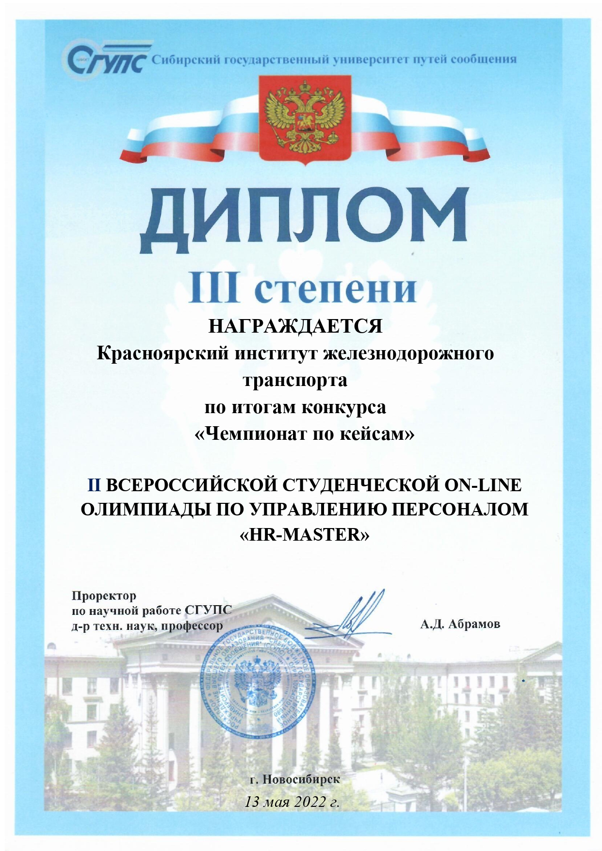 13.05.2022 команда КрИЖТ ИрГУПС в составе студентов группы УП.2-19-1:
