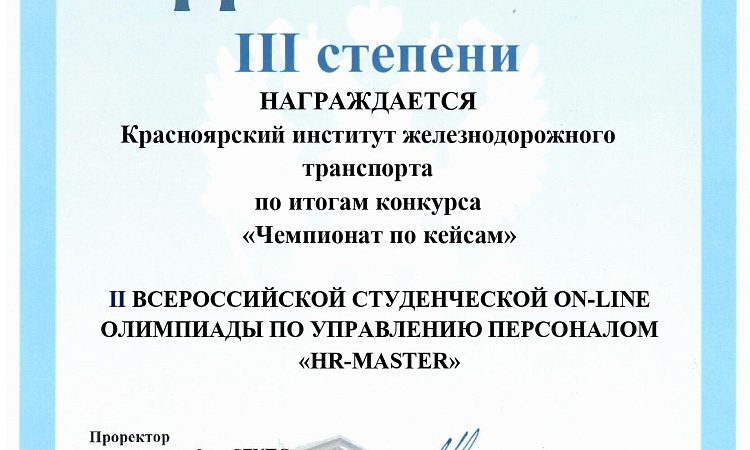 Четыре призовых места во Всероссийской олимпиаде "HR-МАСТЕР"