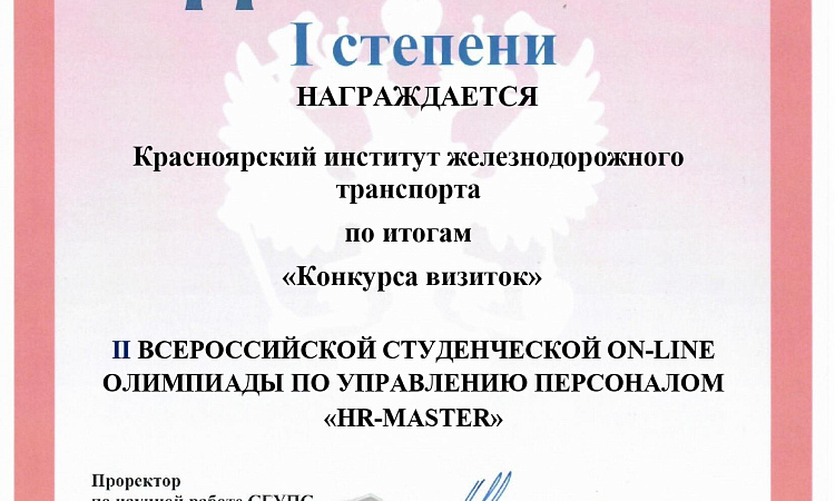 под руководством доцента кафедры Управления персоналом Л.Д. Якимовой, заняла четыре призовых места во Всероссийской олимпиаде "HR-МАСТЕР", проводимой СГУПС, г. Новосибирск.