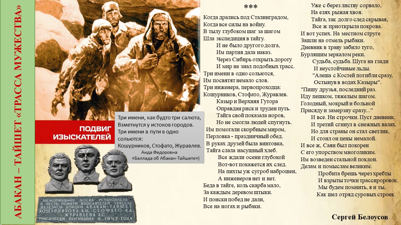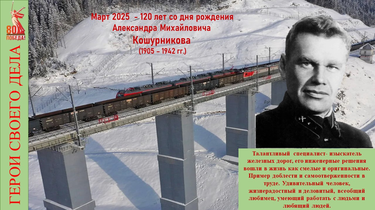 В год 80-летия Великой победы по всей России широко озвучиваются подвиги военных на фронтах и героизм тружеников тыла. Этим постом отдаем дань памяти Александру Михайловичу Кошурникову, человеку, оставившему яркий след в железнодорожном строительстве России. Он погиб как солдат при исполнении долга, когда в суровом военном 1942 году возглавил экспедицию по изысканию трассы Абакан-Тайшет.