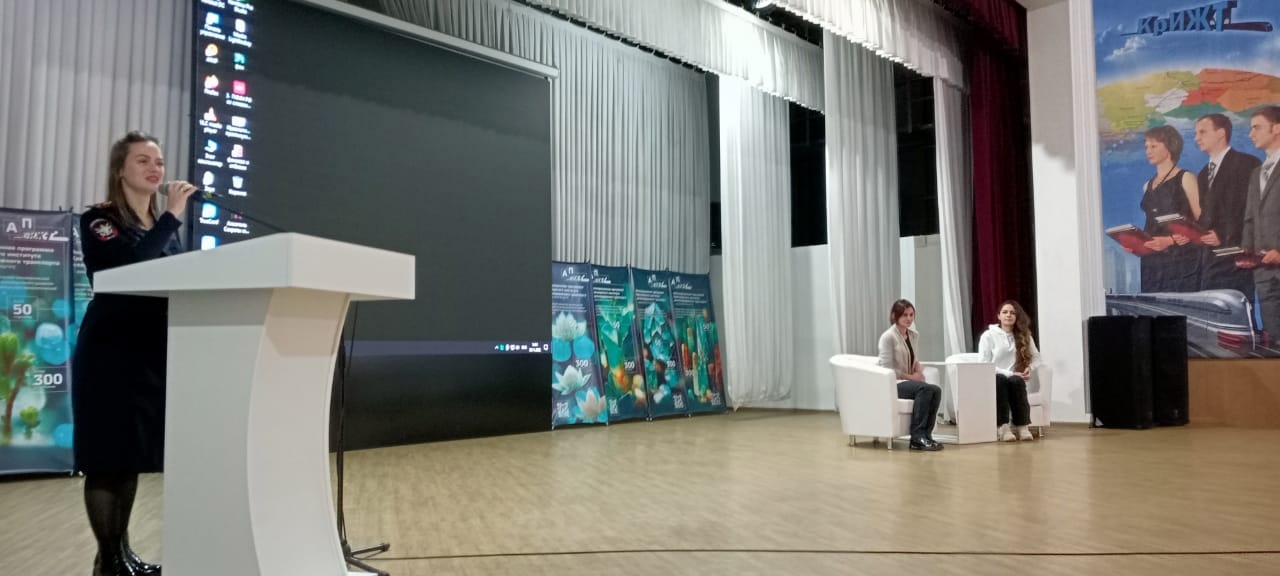 30 ноября 2022 года инспектором ОпДН Сибирского ЛУ МВД России капитаном полиции Крицкой Я.А. с участием специалиста отделения медицинской профилактики КГБУЗ ККНД № 1 Горбачевой Е.В., заместителя председателя ККО ООО «Общее дело» Вящевой Т.В., активиста ККО ООО «Общее дело» и хранителя фондов КГАУК «Енисей кино» Блинниковым А. В. в рамках Декады по профилактике алкоголизма в молодежной среде проведены профилактические мероприятия со студентами 1 и 2 курса СПО (14 групп) и ВО (8 групп) в актовом зале КрИЖТ по темам: