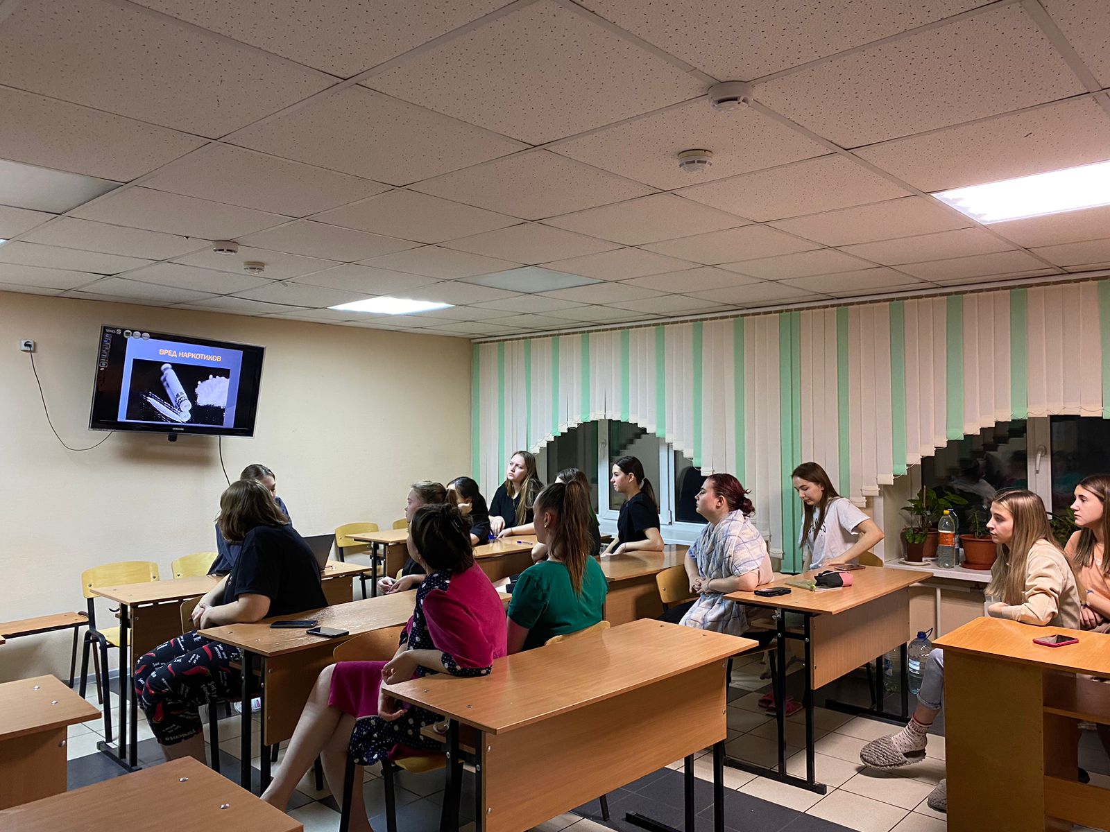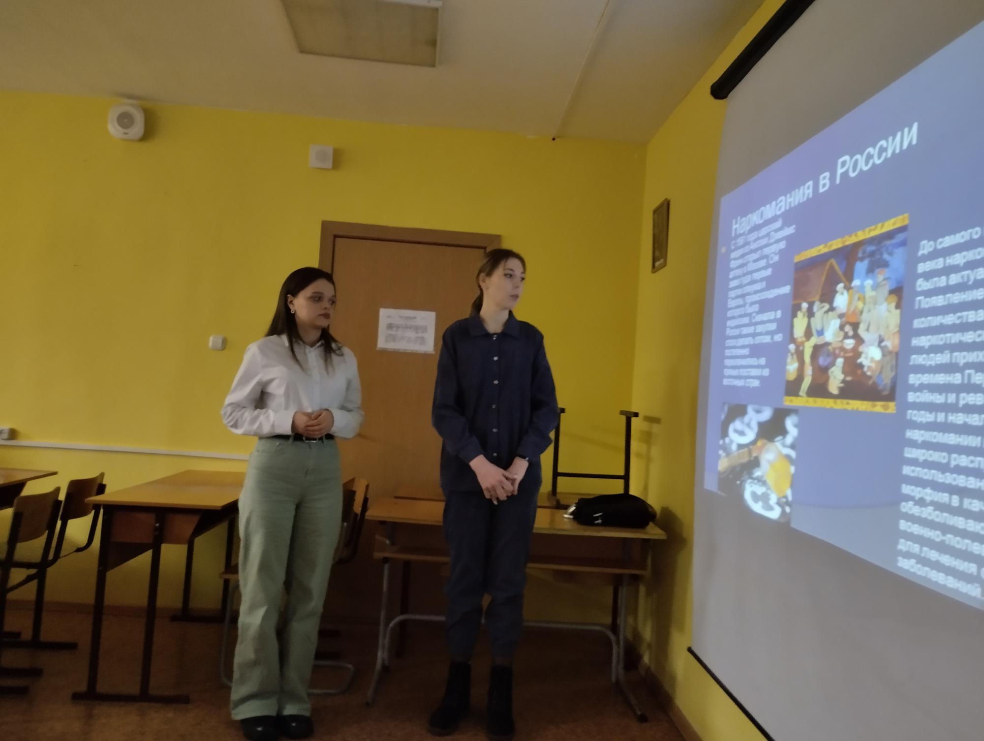 Рассуждая на тему вреда от наркомании, выступающие рассказали слушателям, какую угрозу представляют наркотики, что нужно соблюдать, чтобы избежать их появления в жизни. Студенты посмотрели ролик, рассказывающий о том, как зависимости ломают судьбы людей, уносят жизни.