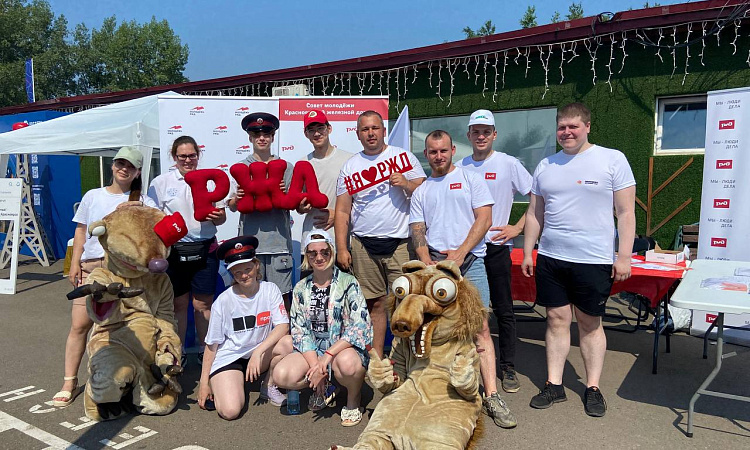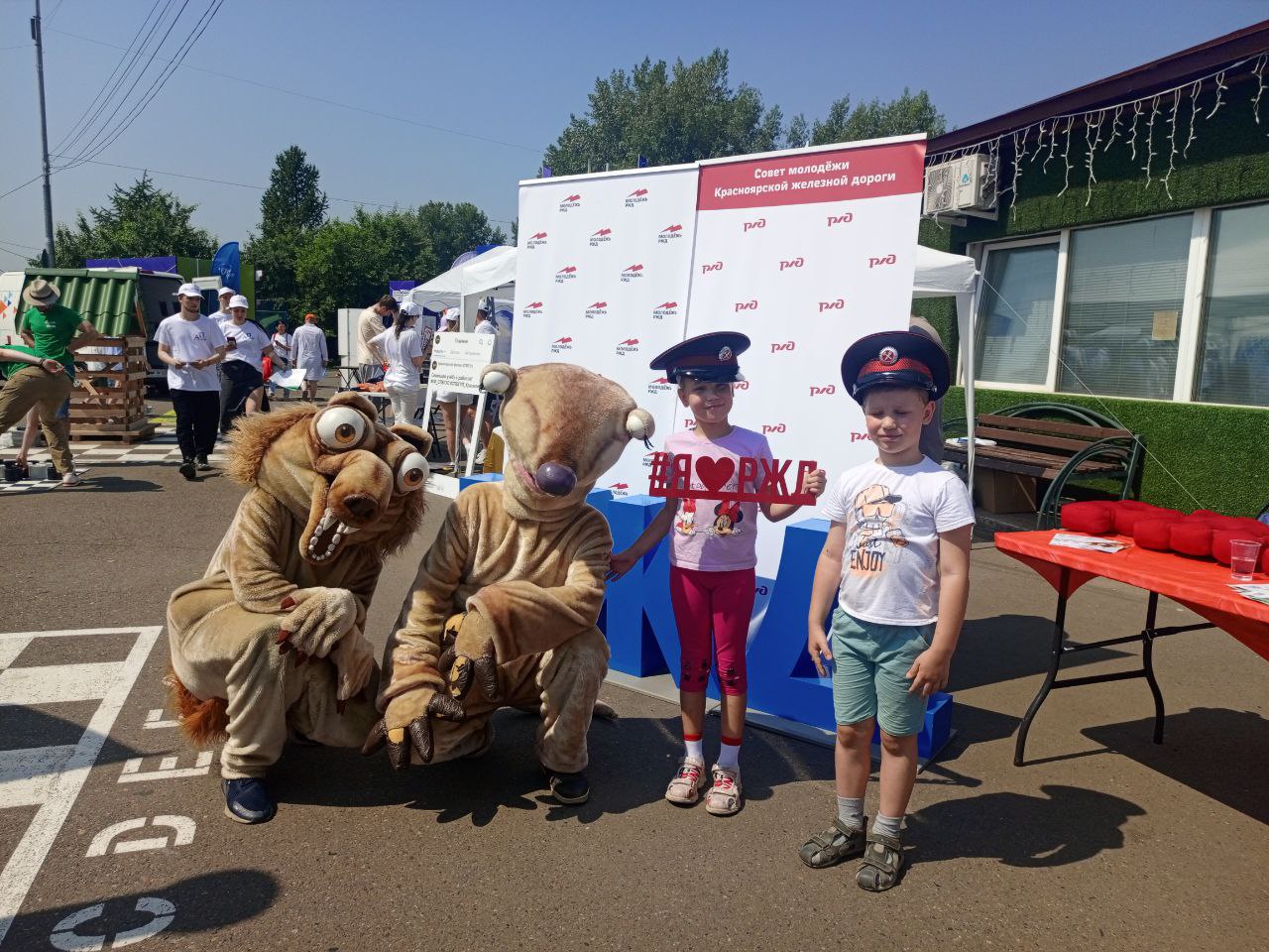 Они организовали профориентационную площадку, где рассказывали о своей образовательной организации, о работе на КрасЖД, а также развлекали детей, несмотря на жару +40 °С.