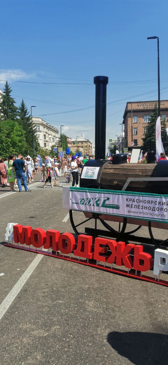 День молодёжи празднуется в нашей стране с 1958 года. Несомненно это один из любимых и молодых праздников. Сегодня на проспекте Мира жара! Жара от улыбок, радости и positive emotion. Красноярский институт железнодорожного транспорта - из прошлого в будущее: чиновник 4 класса образца 1904 года и макет первого русского паровоза Черепановых стали визитной карточкой не только красноярского высшего образования, но и лиги молодых.