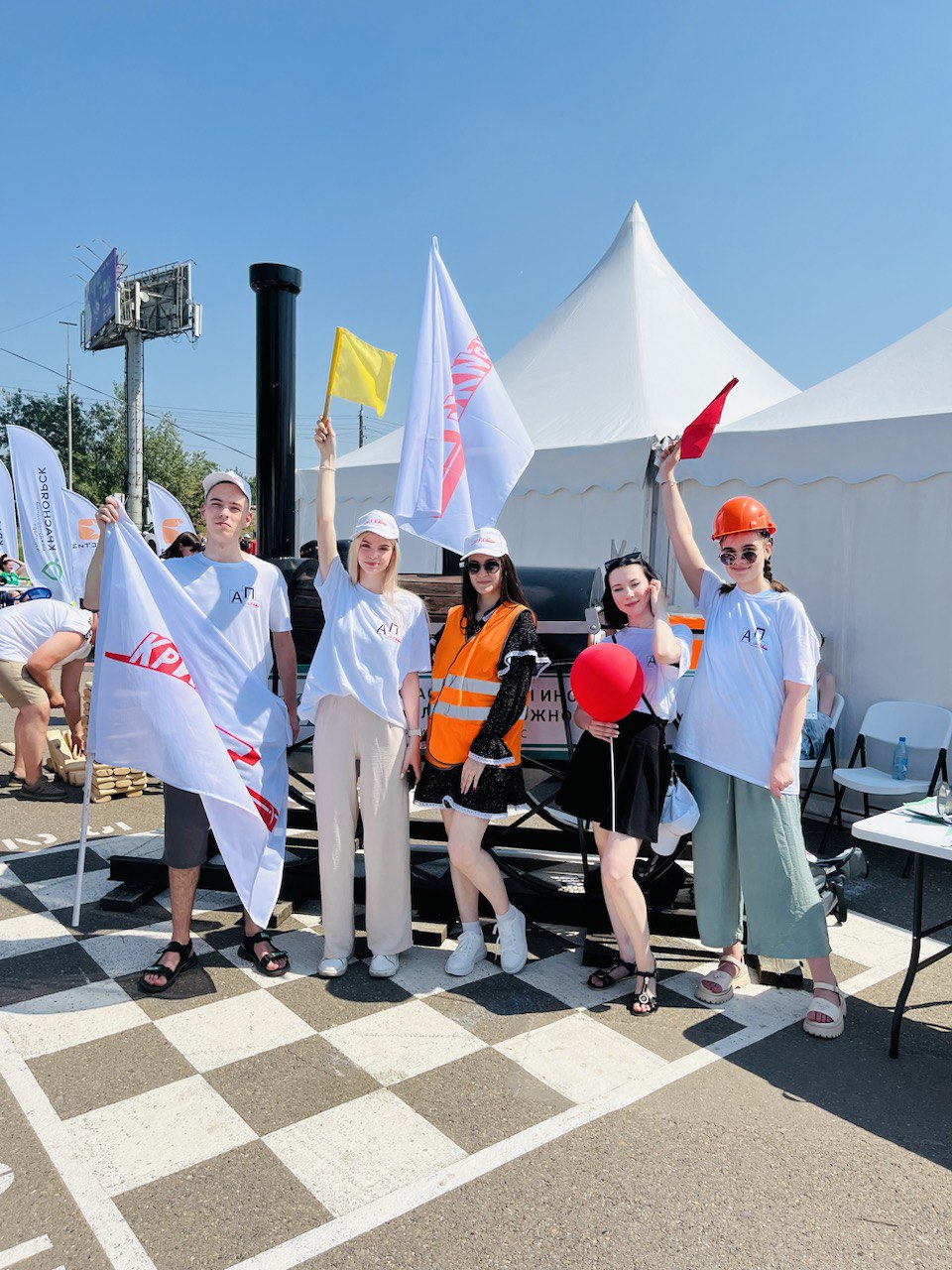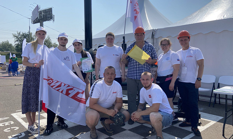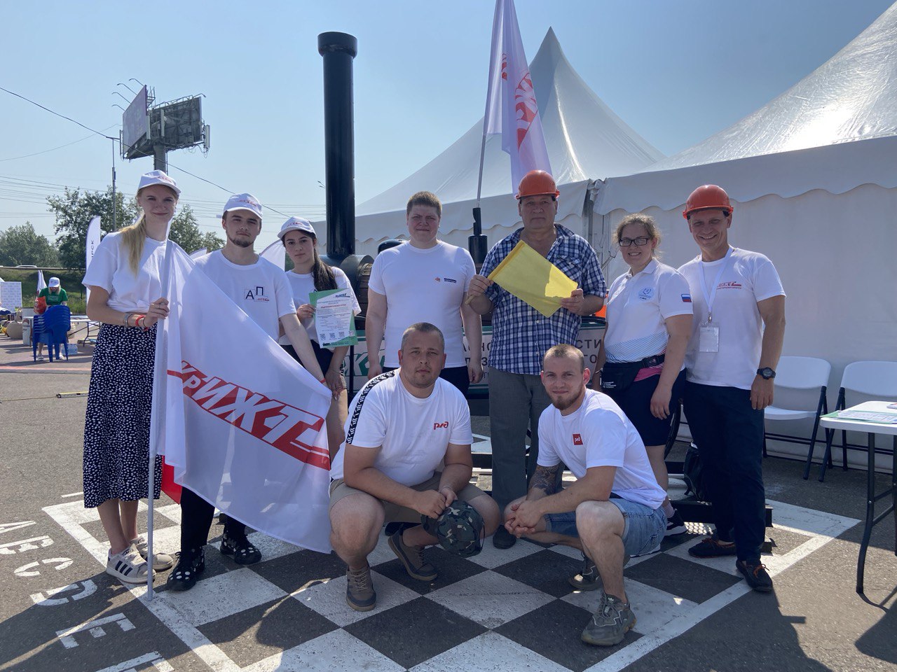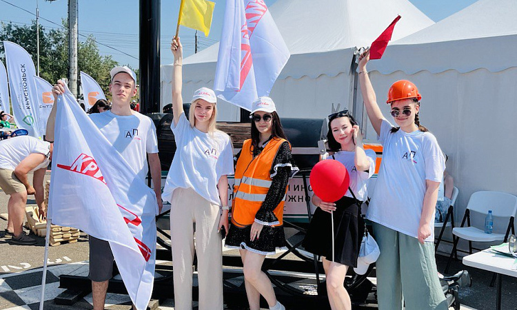 Объективно, самая популярная площадка была у Красноярского института железнодорожного транспорта, ведь сфотографироваться с привезённым нами макетом первого русского паровоза Черепановых выстраивались целые очереди.