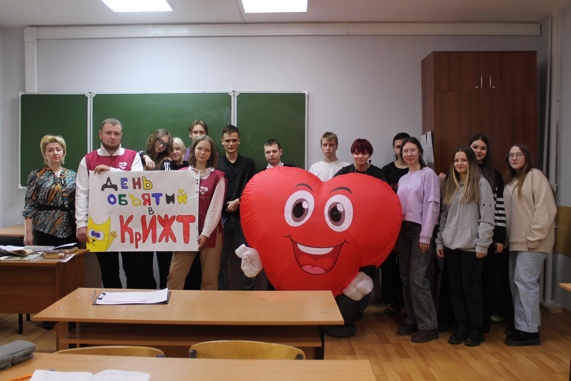 Волонтеры КрИЖТ пройдя по аудиториям образовательной организации проинформировали студентов и преподавателей о душевном празднике.