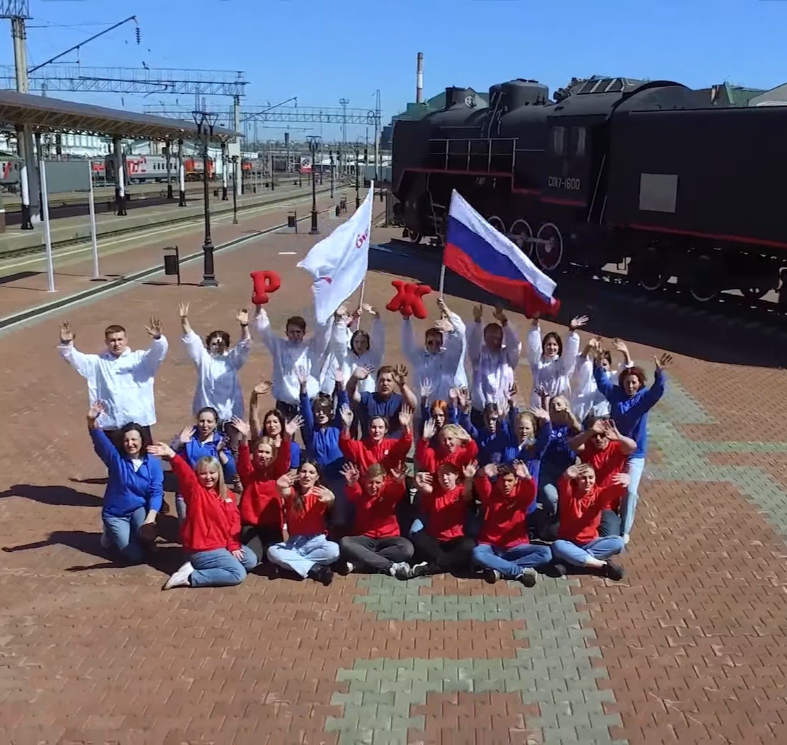 10 июня 2022 года волонтеры КрИЖТ совместно с молодежью КрасЖД провели флешмоб, посвященный Дню России.