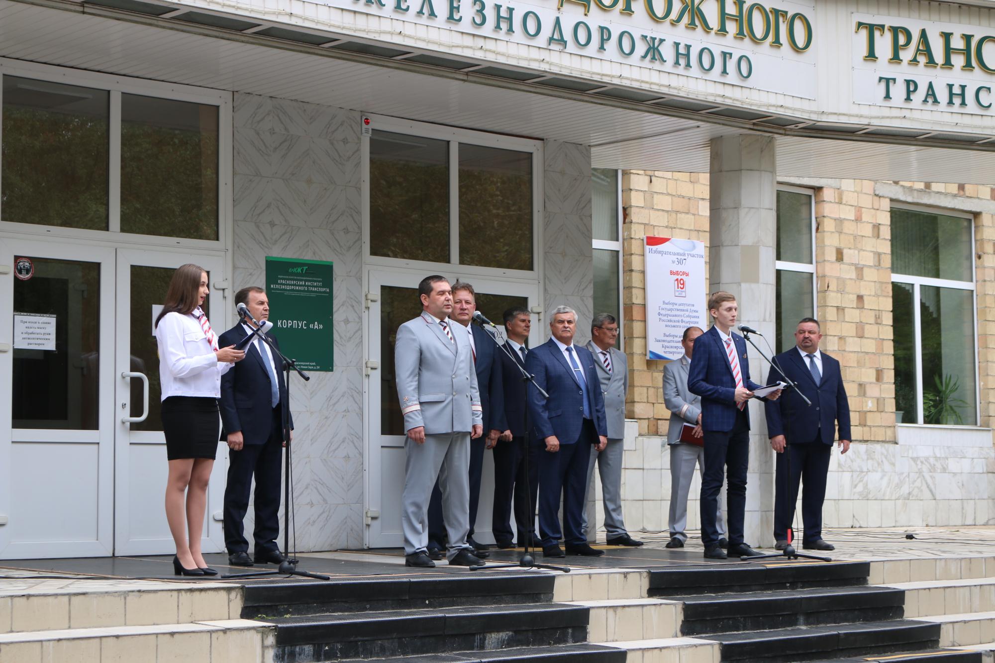 В 09.00 на открытой площадке перед главным корпусом института линейка объявляется открытой для обучающихся СПО, поступивших в техникум на базе 9-и классов. Всё наполнено торжеством и гордостью за то, что мечты сбываются, что ребята теперь частичка большого студенческого коллектива Красноярского института железнодорожного транспорта. Руководители института во главе с директором института Орленко Алексеем Ивановичем и представители руководства Красноярской железной дороги радушно приняли пополнение, искренне пожелали новым студентам счастливого пути в освоении профессиональных знаний.