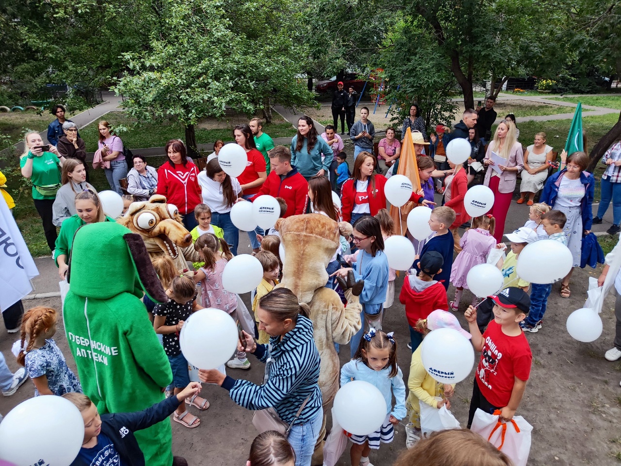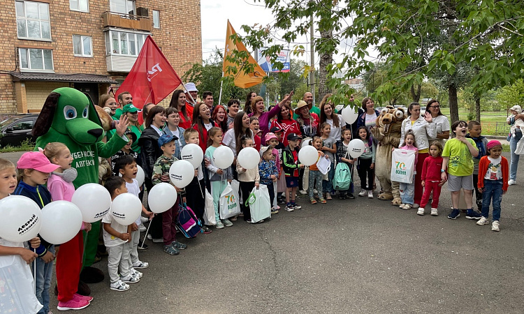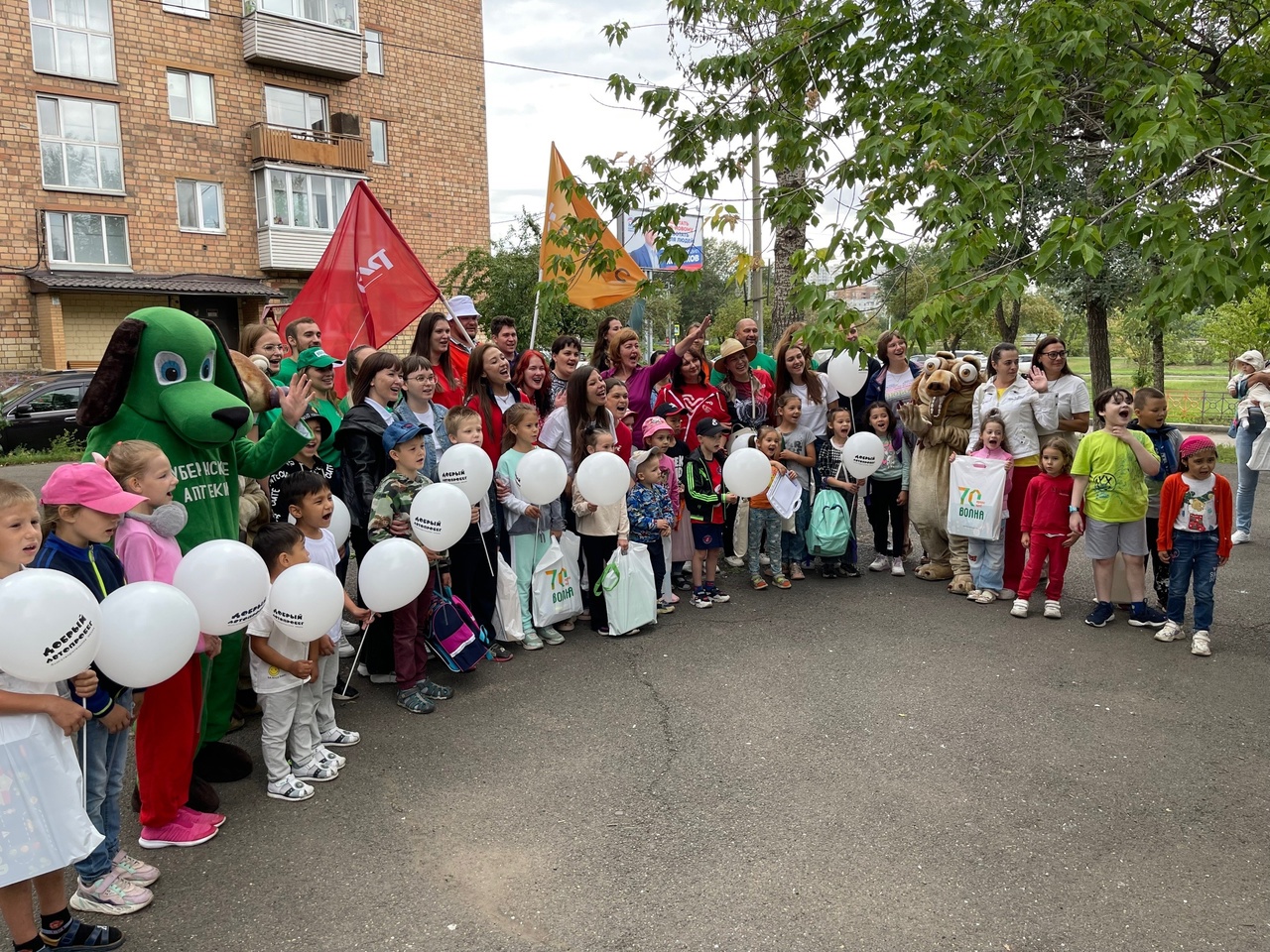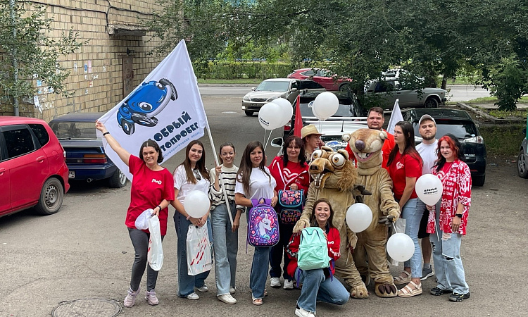 26 августа на личных автомобилях, выстроившись в автоколонну, в корпоративной одежде, костюмах аниматора, воздушными шарами, хорошими настроением, подарками, с главой города Красноярск Владиславом Логиновым, волонтеры отправились в реабилитационные центры для детей.